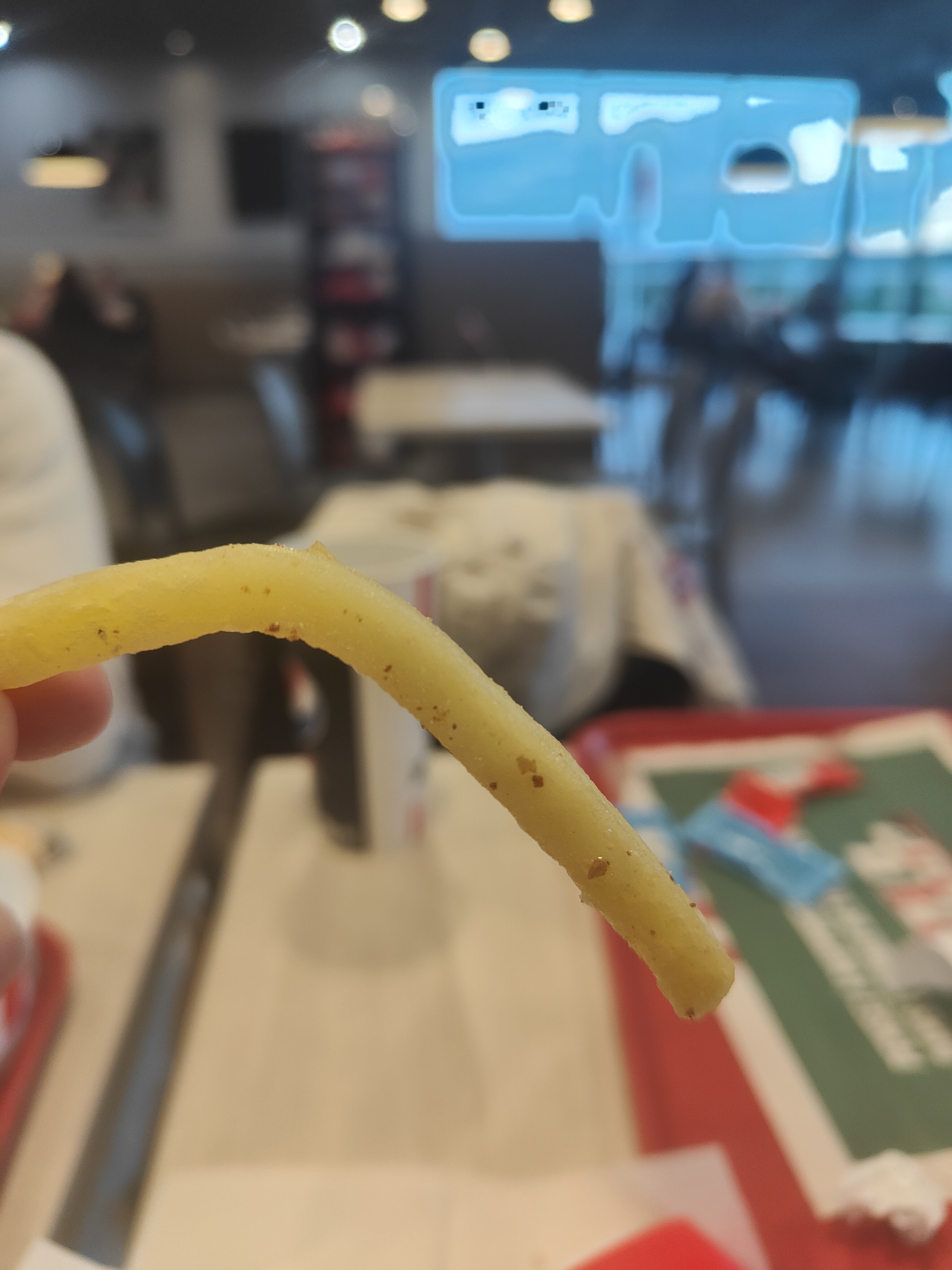 L'un des restaurants KFC avec un intérieur des plus agréables et un service de qualité. Cependant, il y a un petit bémol que j'ai remarqué à plusieurs reprises : les tenders sont ridiculement petits avec une chapelure excessive. En comparaison, les tenders des restaurants KFC du Gros-Horloge ou de Saint-Sever sont légèrement plus grands avec beaucoup moins de chapelure, ce qui donne l'impression de manger plus de poulet. Mis à part cela, tout le reste est satisfaisant.