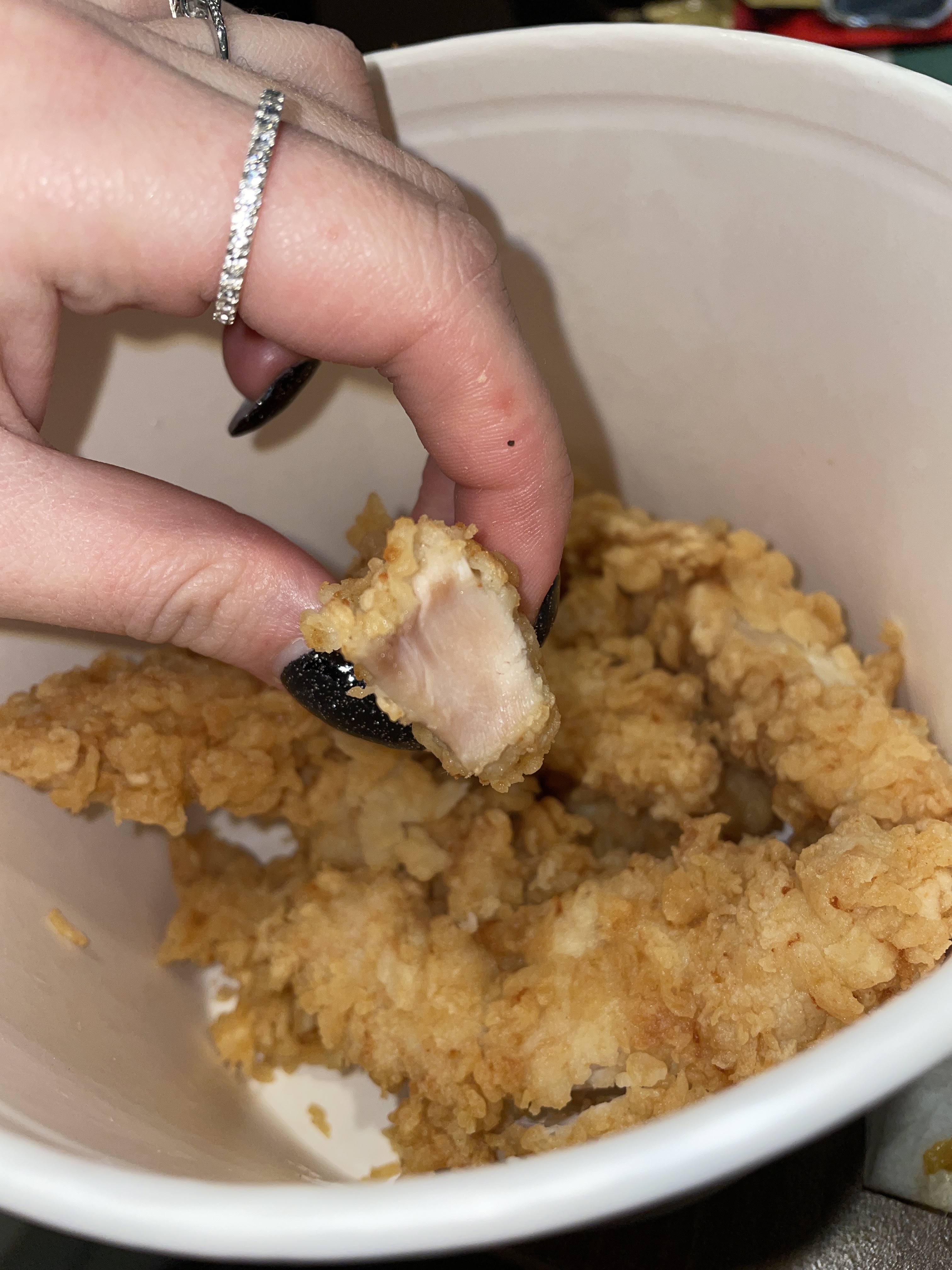 Il semble que les tenders aient bien diminué de volume. J avais un souvenir plus sympathique de KFC et de ces bons morceaux de poulet. Cela faisait quelques années que je n'y etais pas allée. Étant plutôt adepte de la cuisine maison. Dommage, je n'y retournerai pas. C'est comme tout. On nous appâte au début et après ça en perd...