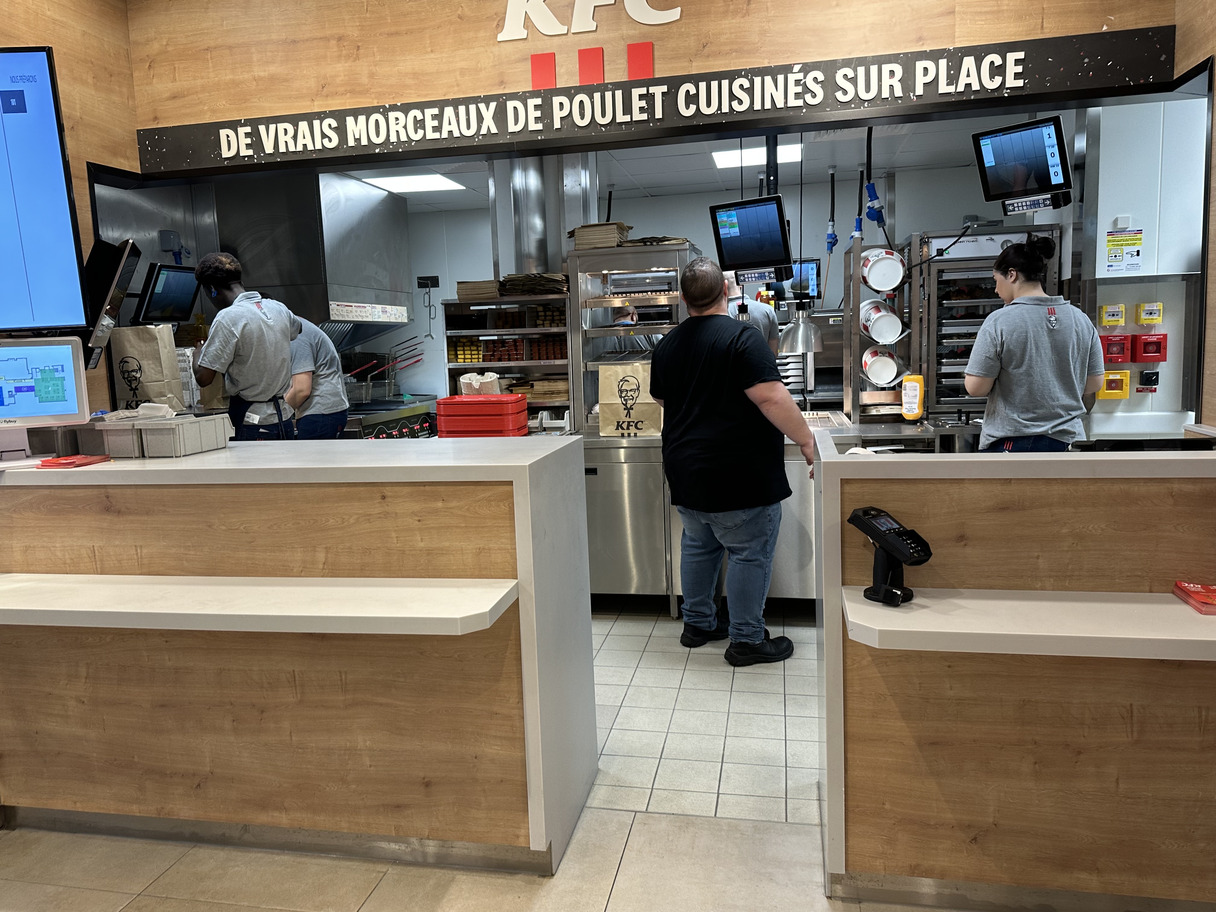 De passage sur Paris, nous nous sommes arrêtés dans ce KFC. Beaucoup de clients et le personnel n'avait pas l'air d'arriver a servir tout le monde. De la commande à réception, nous avons attendu plus de 30 minutes. Dommage que nous n'ayons appris que plus tard qu'un des four était en panne, un peu de communication aurait été la bienvenue. Un bon repas dans l'ensemble.
