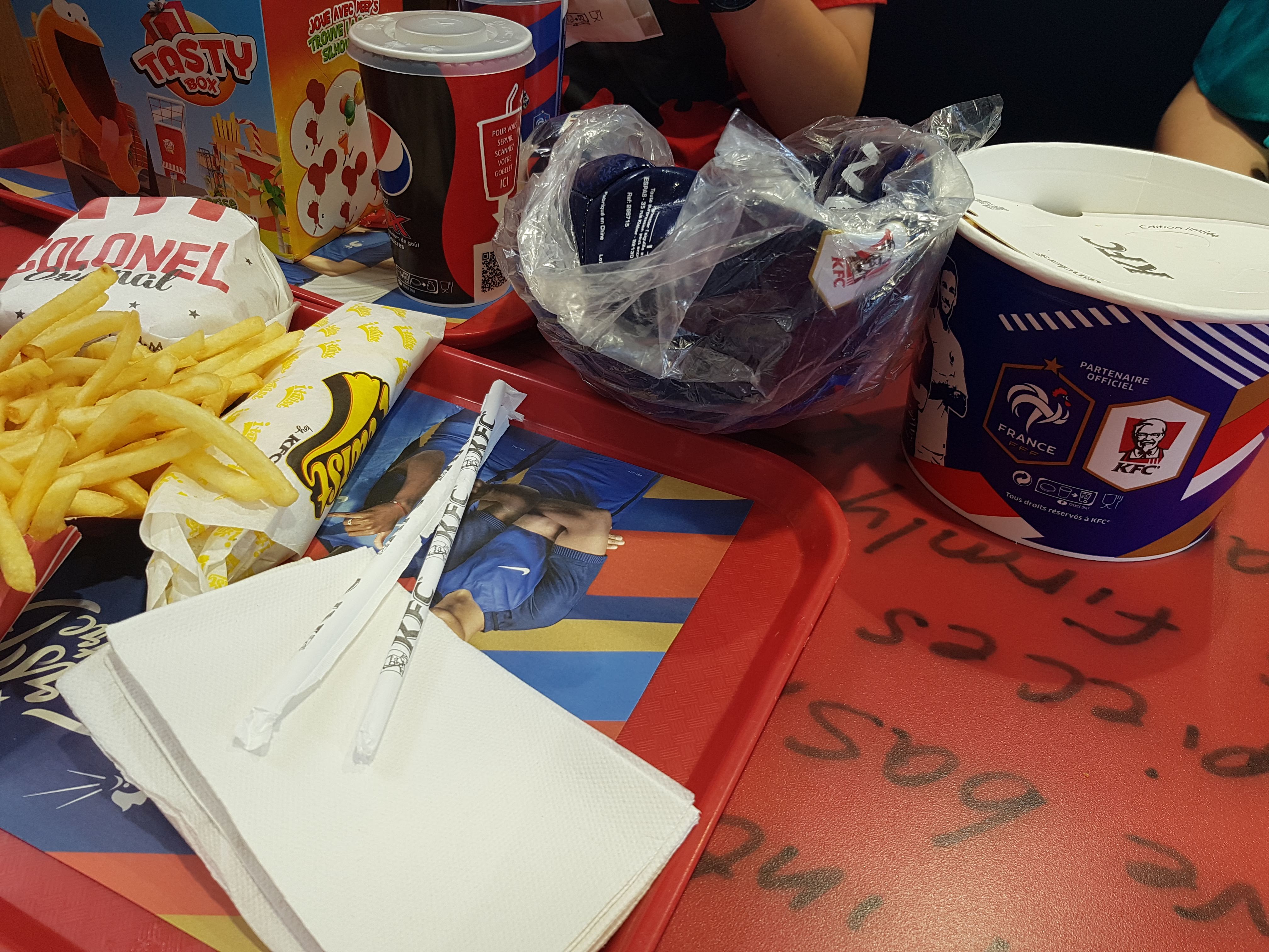 KFC DANS UN ÉTAT LAMENTABLE !! FRANCHEMENT LES POUBELLES DÉBORDÉES GRAVE !! PERSONNE N'A FAIT LE MÉNAGE. OU UN SEMBLANT DE MÉNAGE SEULEMENT. FRANCHEMENT C'EST DÉPLORABLE ! A ÉVITÉ !! MA COPINE A COMMANDÉ UN 7UP MOJITO AU LIEUX DE SA ELLE A EU DE L'AU PÉTILLANTE ET QUAND ON EST ALLÉ DEMANDER DES COMPTE A LA VENDEUSE ELLE NOUS A RÉPONDU DÉSOLÉ MAIS IL N'Y AVAIT PLUS DE 7UP MOJITO !!!!!!! EEUUHH OUI DU COUP VOUS M'AVEZ MIS DE L'EAU PÉTILLANTE AU LIEU DE PRÉVENIR ET QUE JE PRENNE AUTRE CHOSE ??? BEAUCOUP D'ERREURS ET D'OUBLIE !! DERNIÈRE FOIS. A BON ENTENDEUR.