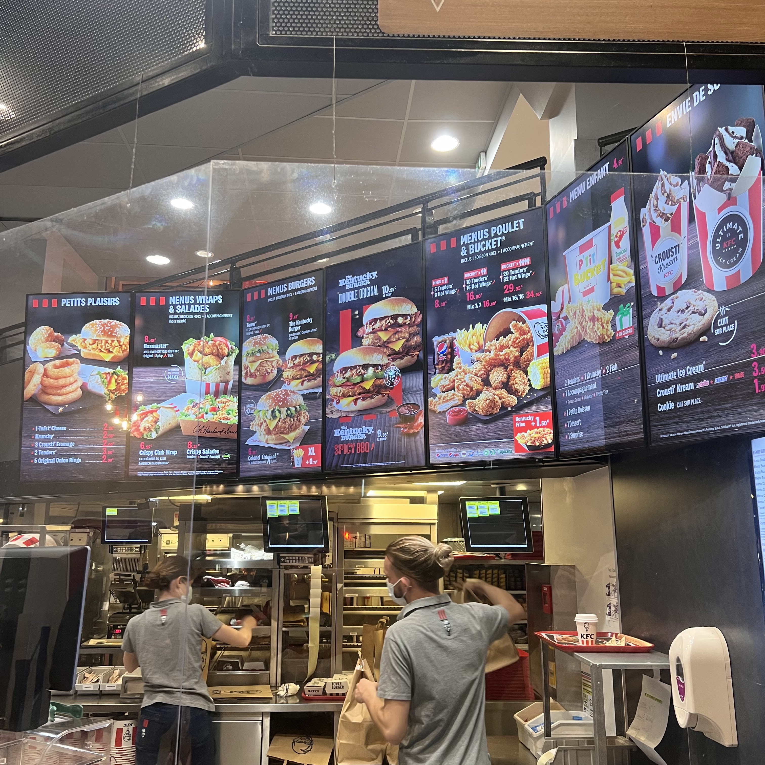 Pour manger rapidement ça va. Le traditionnel menu KFC en France. Très beau visuel depuis le premier étage. Pas beaucoup des tables