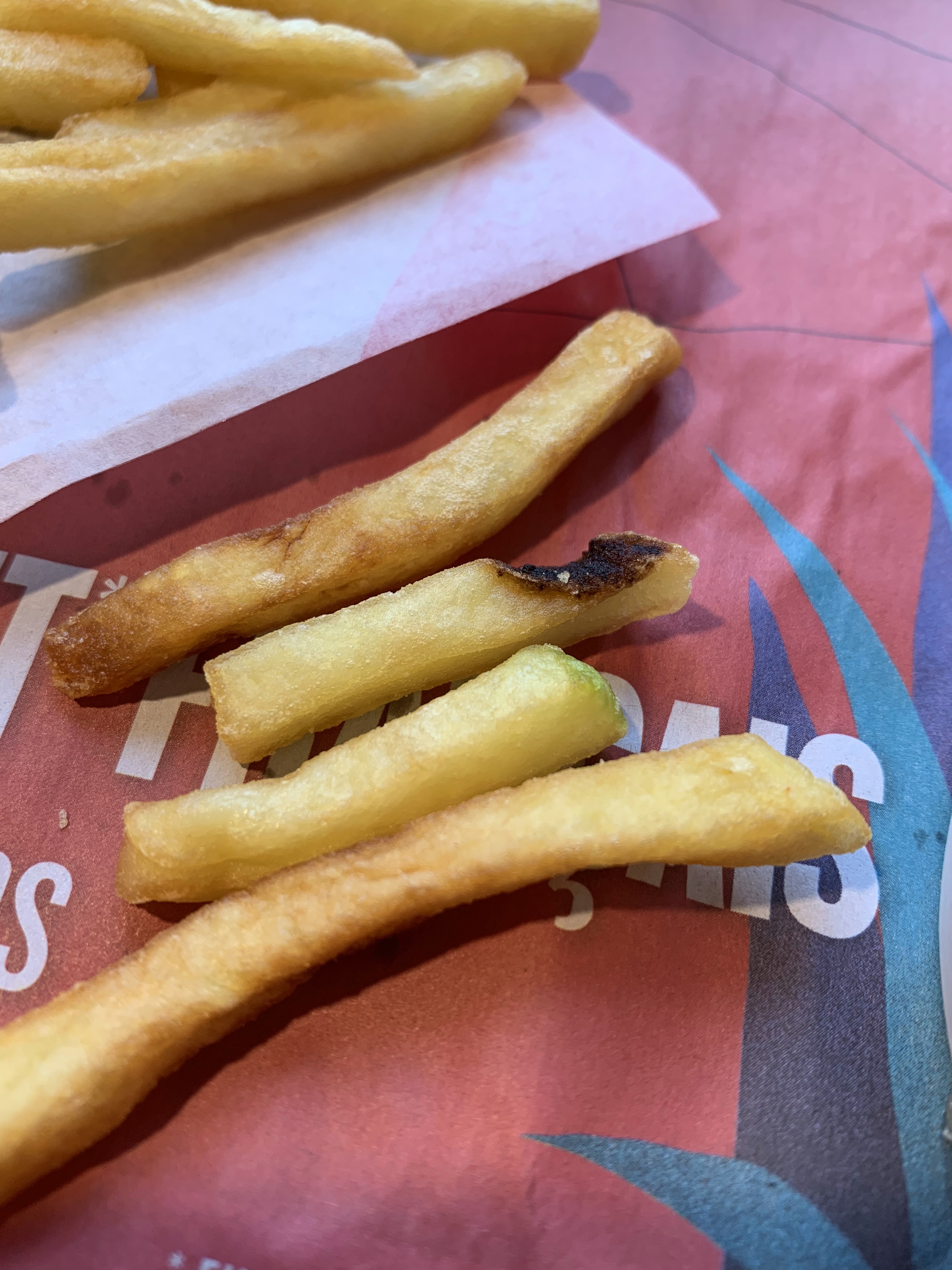 Plus de la moitié des tenders ne comportaient que de la pâte et de la panure, pas de poulet c’était vraiment mauvais je n’y retournerais plus, la dernière fois ils m’ont enlevé un burger en m’assurant que l’erreur venait de moi mais j’ai bien été débiter. Ce n’est pas la première fois que ce genre de choses arrive.