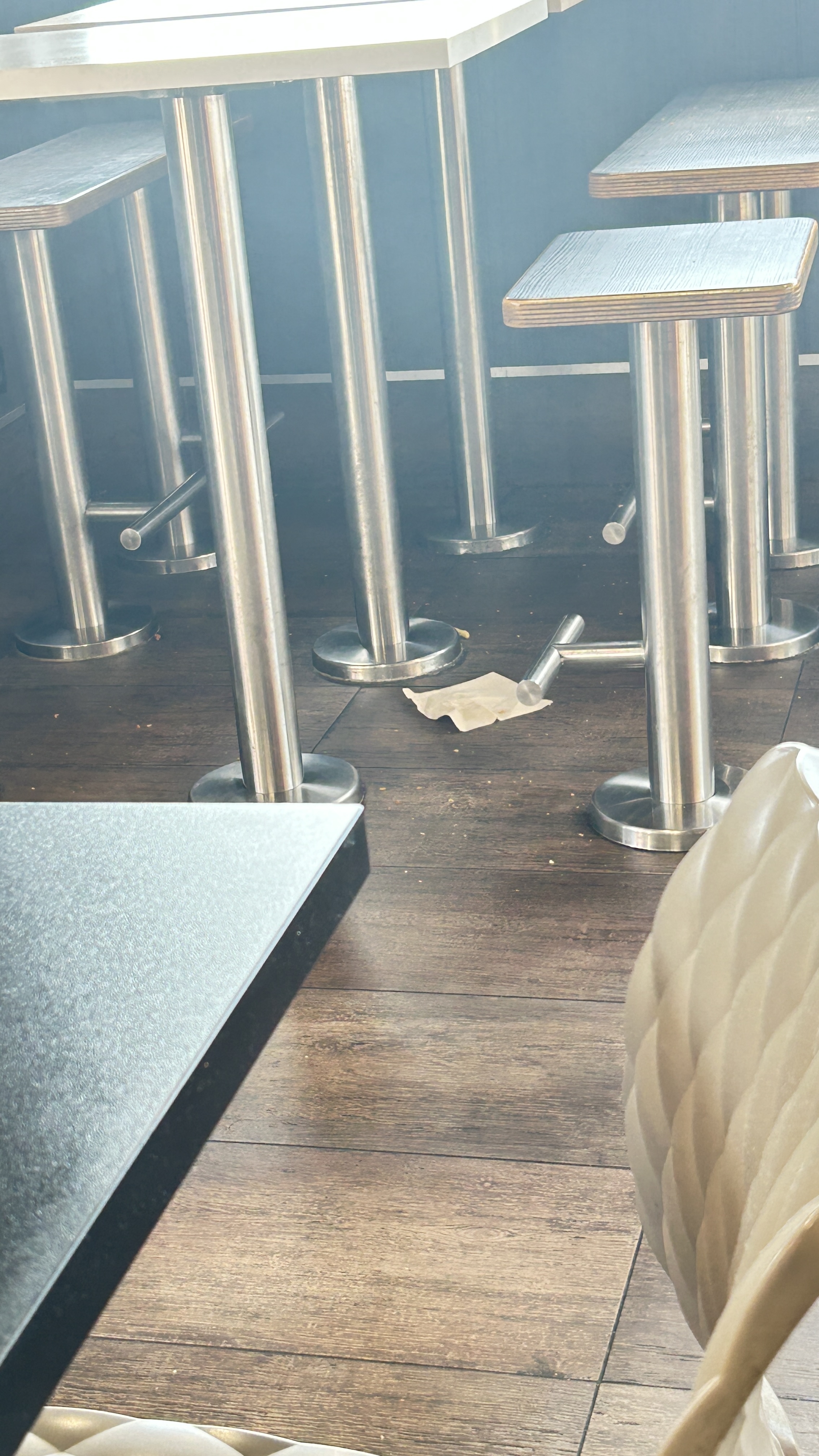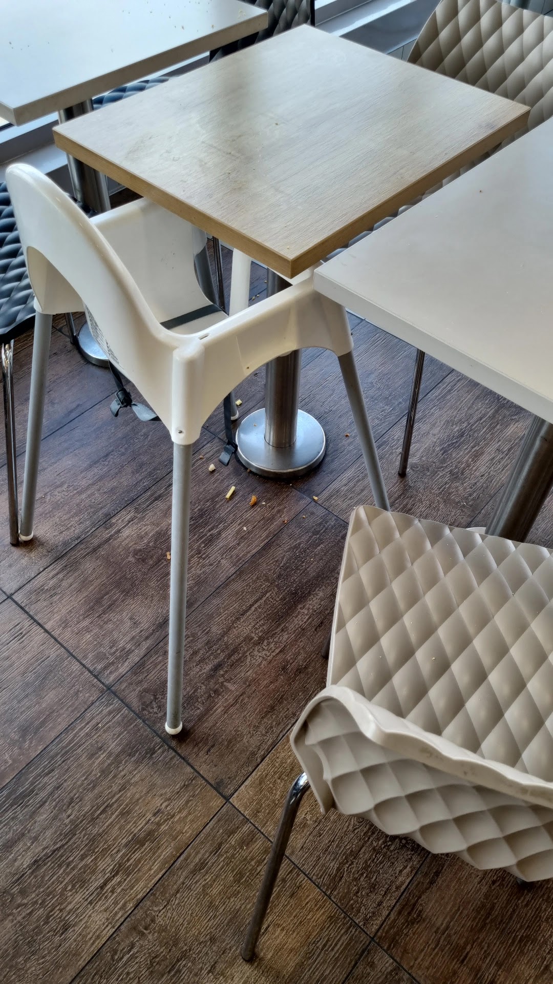 Établissement sale, on mange dans les déchets, obligé de poser les plateaux où on peut, on le dit au personnel qui nous prend de haut : c'est bon, on y vas !... Bref accueil zéro