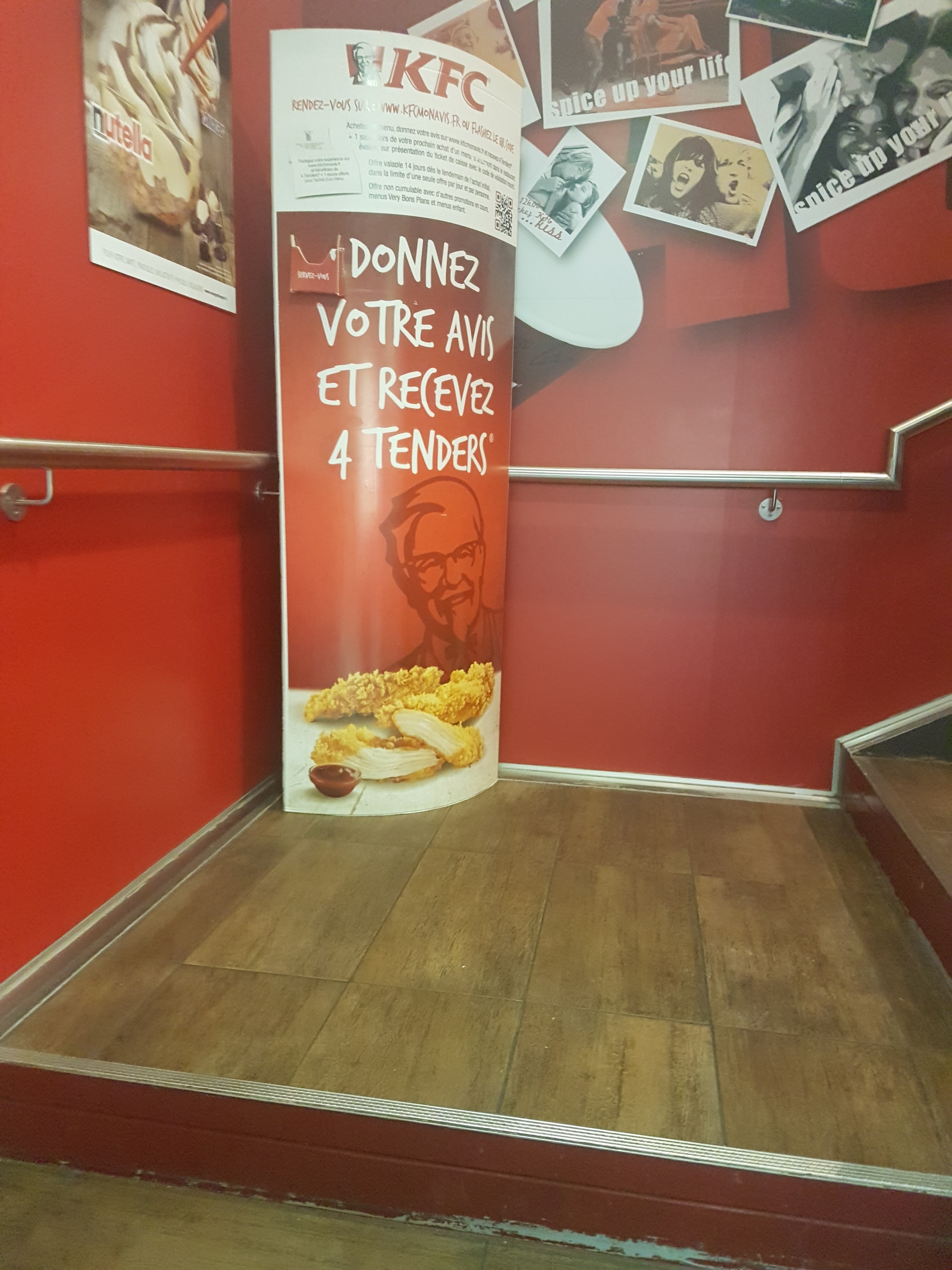 Aucune politesse, vous pouvez attendre longtemps devant le comptoir si vous avez une demande tant que vous ne les interpellez pas vous n’aurez personne. Aucun bonjour, au revoir ou merci. La propreté du restaurant laisse clairement à désirer que ce soit en cuisine ou en surface. Ce KFC est-il à l’abandon ?