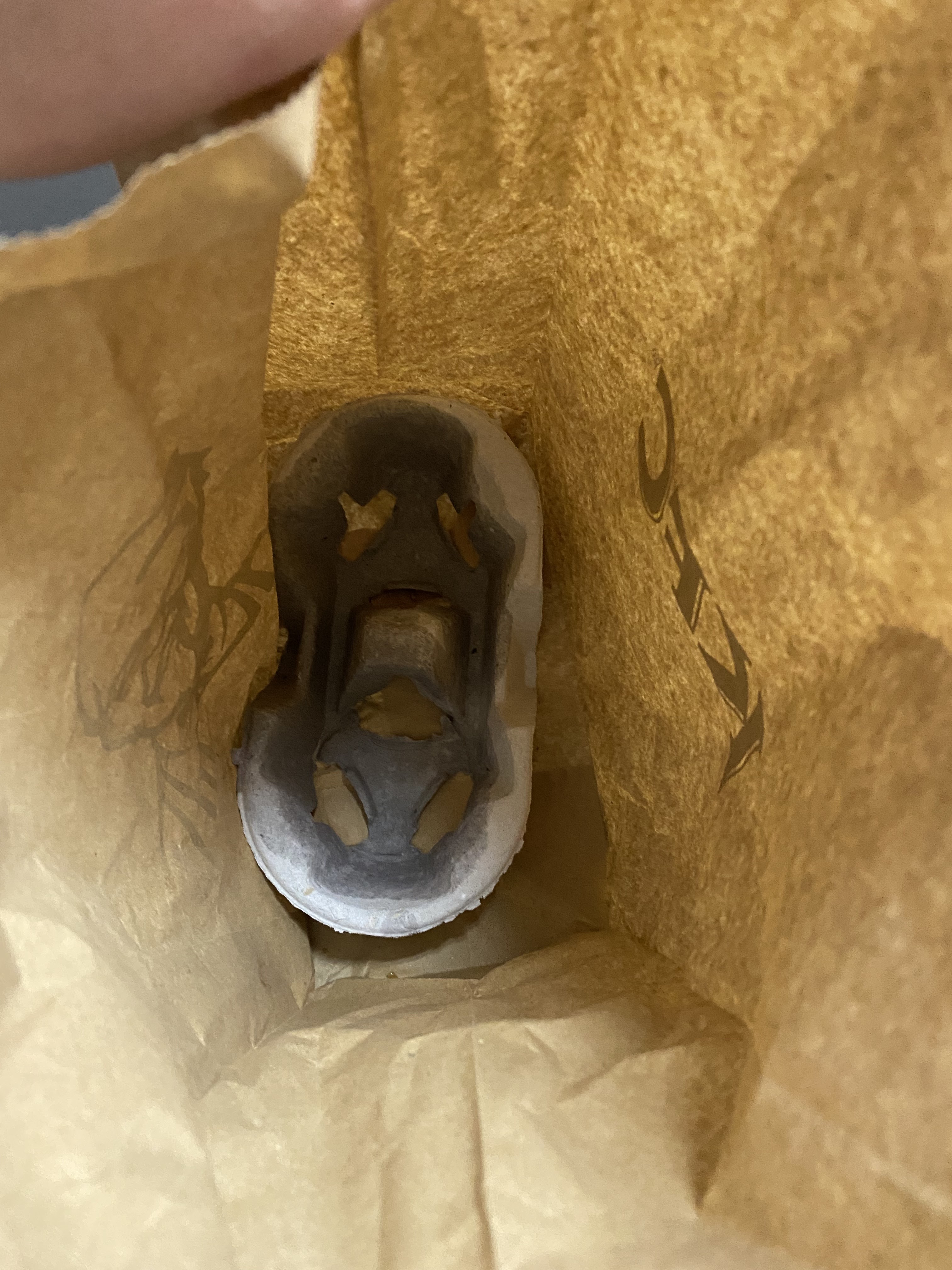 Je viens de récupérer ma commande au bout de 5 min mon sac se déchire car les boissons n’était pas mis correctement au final tout ma commande a fini sur le bitume.