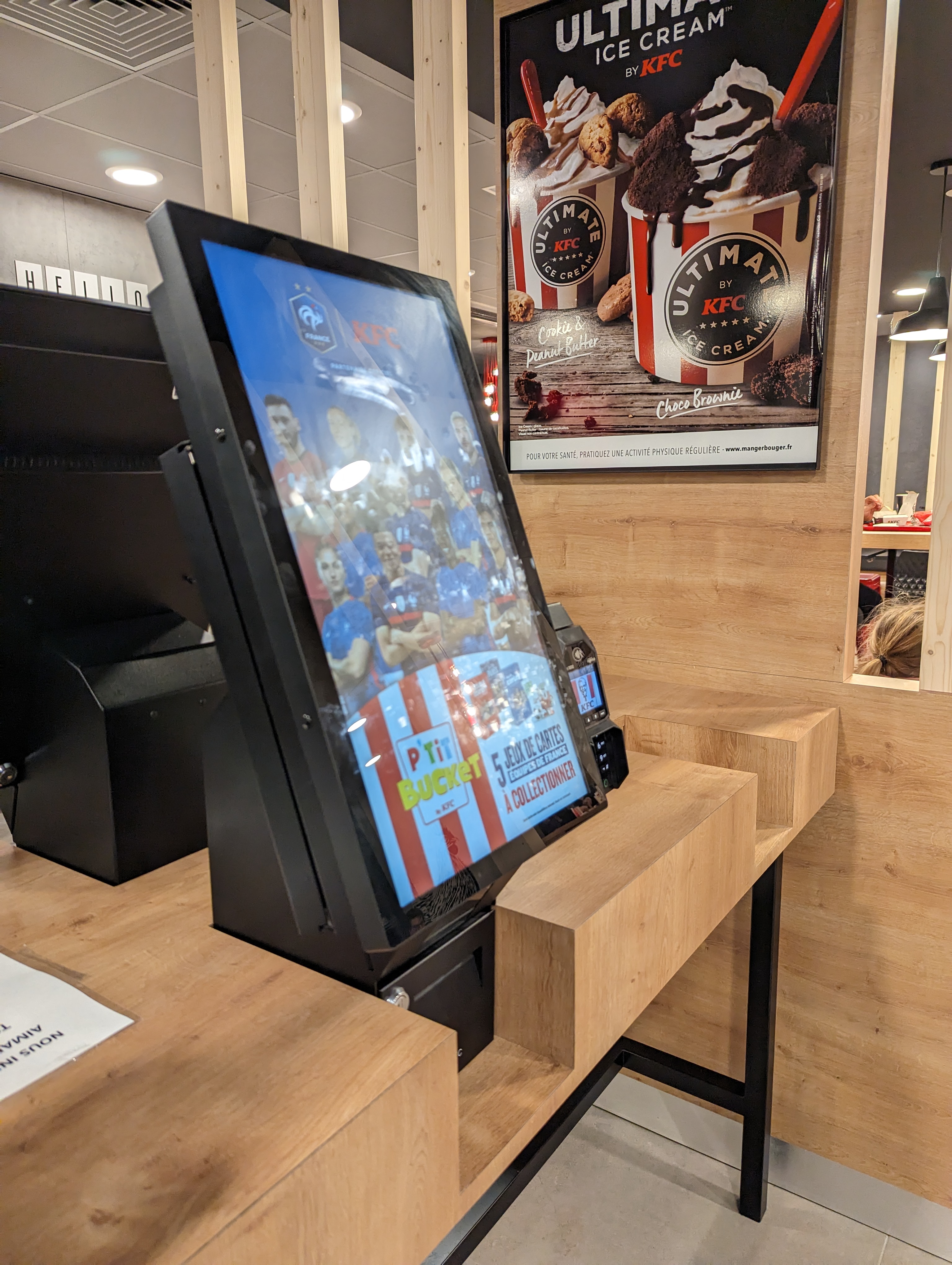 Venant des Philippines et ayant expérimenté KFC au Royaume-Uni et aux États-Unis, ce KFC était plutôt décevant. Cela ne veut pas dire que ce poulet n'était pas bon, car il était plutôt savoureux et constituait une bonne collation - mais si vous êtes habitué au poulet KFC avec les 11 herbes et épices et à se lécher les doigts, mieux vaut éviter le KFC en France. Les seules options de poulet étaient des tendres et/ou des ailes - pas des morceaux de poulet entiers (poitrine, cuisse, pilon, peu importe) - et ils n'étaient pas aussi assaisonnés qu'on pourrait s'y attendre d'un établissement KFC. En plus, il n'y avait pas de sauce ! Nous avions entendu dire qu'il n'y avait pas de sauce chez KFC Espagne, mais nous avons été choqués de constater la même chose en France également. Il n'y avait pas non plus d'option pour la purée de pommes de terre, qui est un aliment de base de KFC. Nous avons commandé un seau de poulet familial mixte (Tenders et Hot n Spicy Wings), deux Colonel Fries (j'ai oublié le nom mais elles étaient chargées de bacon et de fromage) et deux boissons. Encore une fois, c'était un repas satisfaisant et nous a rassasié - mais cela ne ressemblait pas à une expérience KFC. Je recommanderais cet endroit à tous les amateurs de KFC France, car il était incroyablement efficace et propre - nous avons pris notre repas quelques minutes après avoir passé la commande. Et tout le personnel était gentil et poli. Je ne le recommanderais pas à ceux qui ont les normes Intl KFC.
