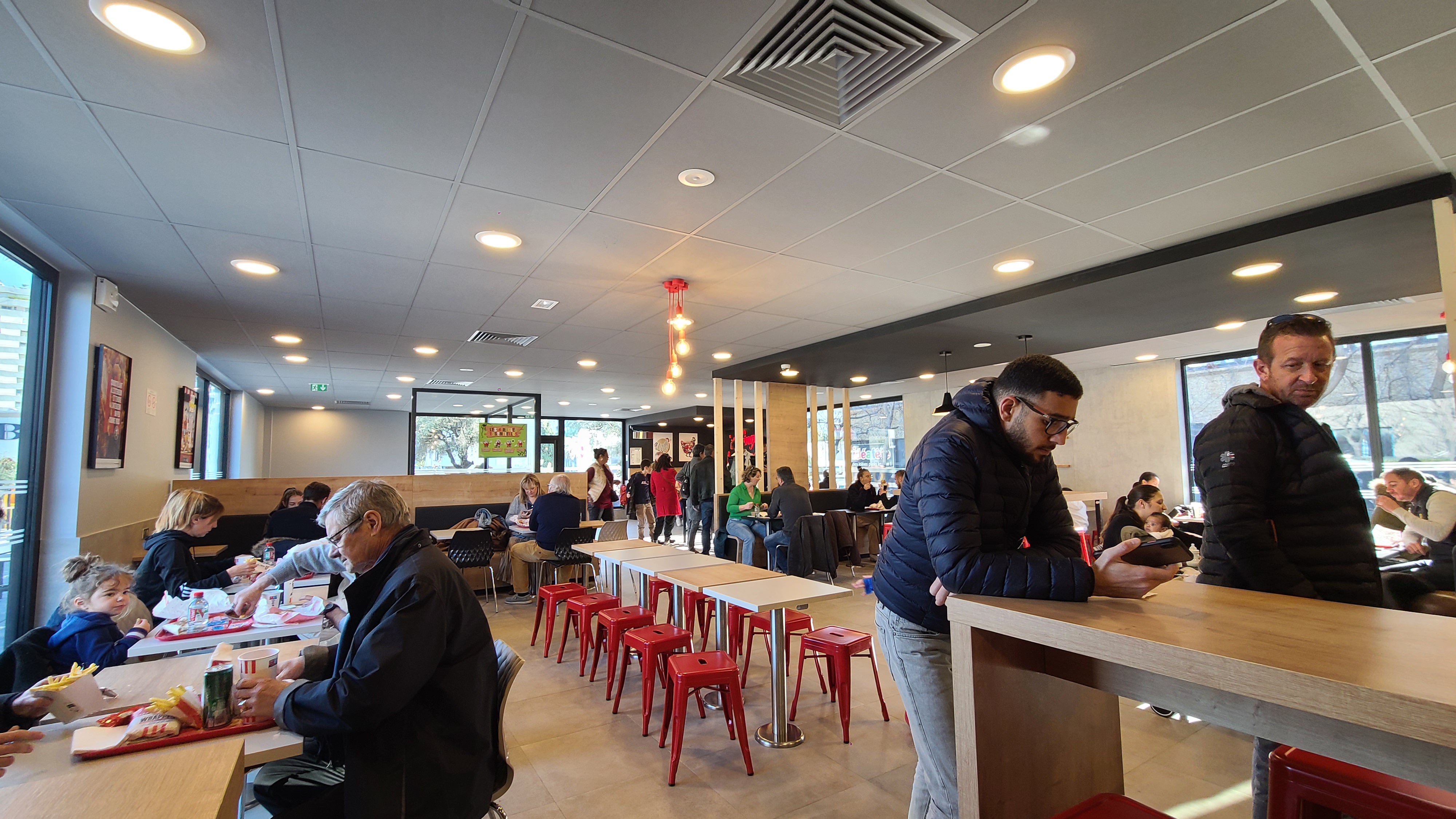 J'y suis allé le Lundi 14 Août 2023 aux alentours de 14h pour déjeuner. Le service était un peu lent, j'ai dû attendre peut être 5 minutes entre le paiement en borne de ma commande et le retrait de celle-ci. Il manquait une cuillère pour ma glace ce qui est dommage. Les plats étaient bons, cela change d'autres fast good tels que BK ou McDo... Un grand parking est à votre disposition pour vous y garer mais attention aux heures de pointe, il risque d'être blindé. Cordialement 2eme avis: J'ai pris en click and collect avec l'application, il y avait -10% ce qui est intéressant. Impossible de retrouver le ticket de caisse sur l'application. Les portions étaient TRÈS petites (cf photos). Je n'ai pas eu la sauce que j'ai demandée, le burger était très petit et les tenders que j'ai eu sont de la taille d'un doigt... Vraiment très dommage... La boisson n'était pas celle demandée non plus pour couronner le tout. De plus, aucun gel hydroalcoolique pour se laver les mains dans ce restaurant, alors que l'on y mange avec les mains. Il est regrettable de ne pas avoir à disposition (mis à part les toilettes) de gel à disposition. Cordialement Thomas
