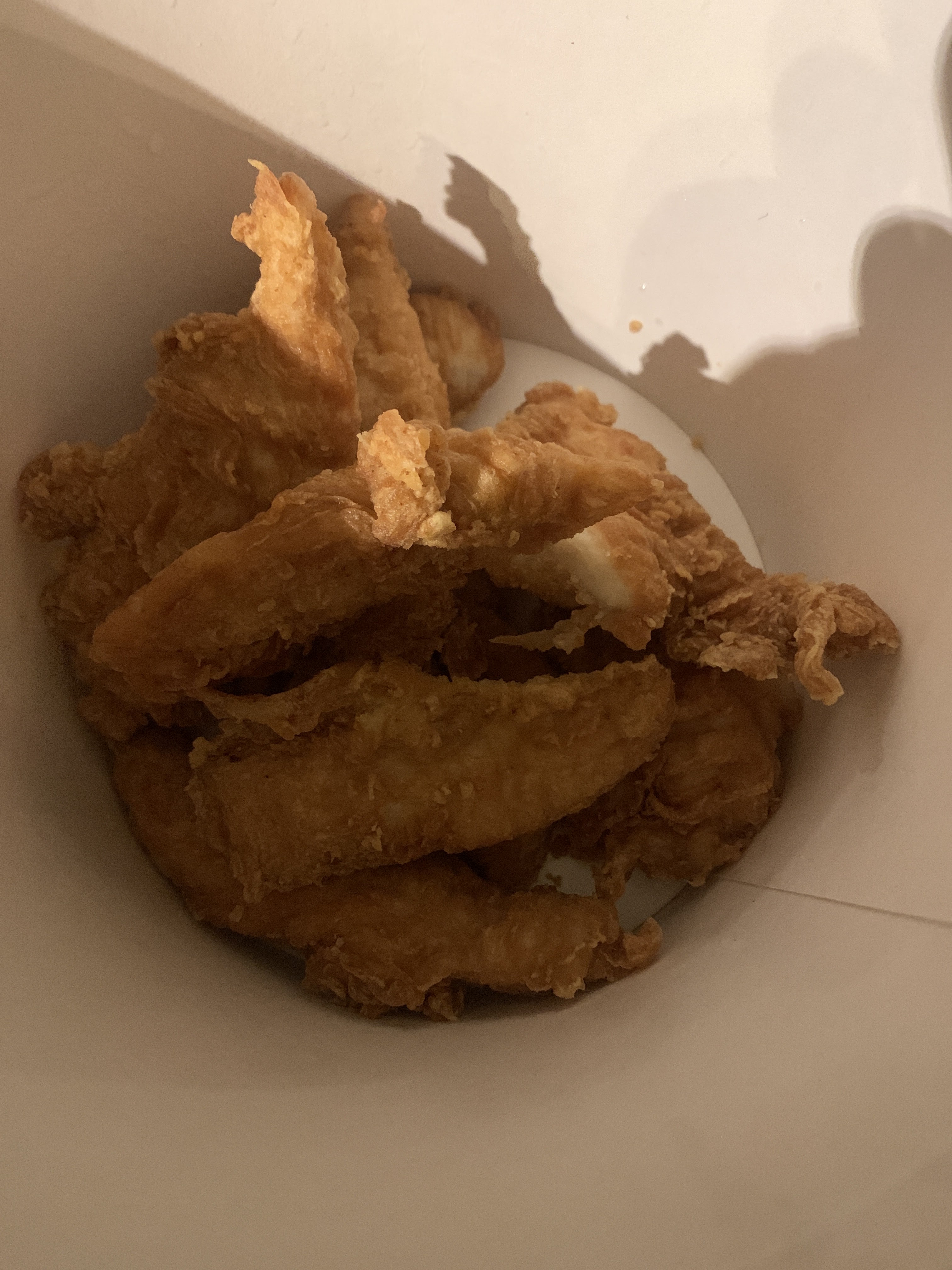 Comment dire, j'ai ouvert ma boîte de mes Kentucky fries avec bacon. Bacon pas assez cuit, le chedar est inexistant et les frites à peine chaud. Je passe sur mon boxmaster et je trouve des miettes carbonisées dessus. Je me demandé pourquoi je n'y allais plus, maintenant je m'en rappel. Ce KFC est à éviter