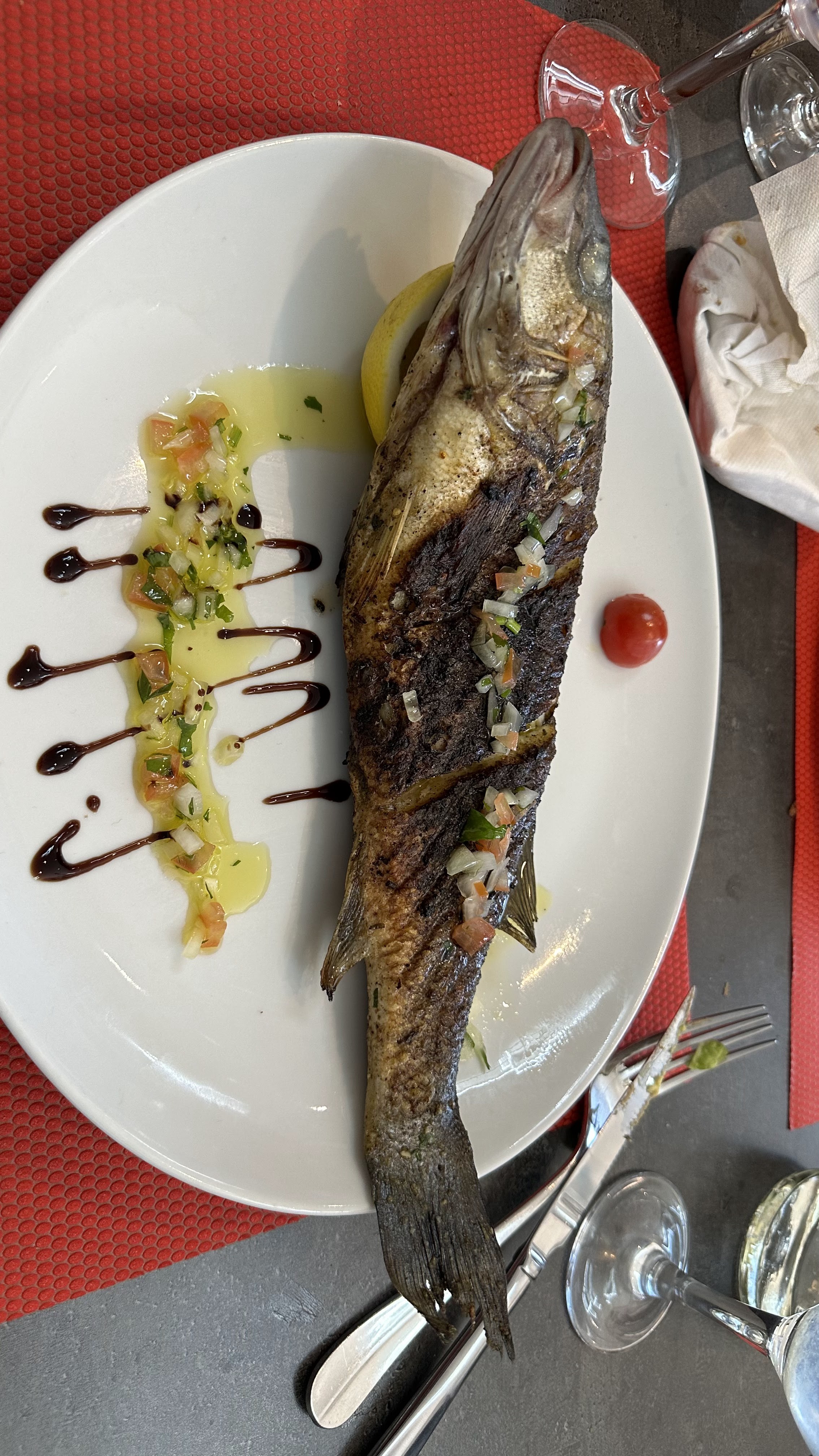 Le poisson bar grillé était vraiment bon et frais. L’accueil est chaleureux et le restaurant est spacieux. Je recommande cette adresse