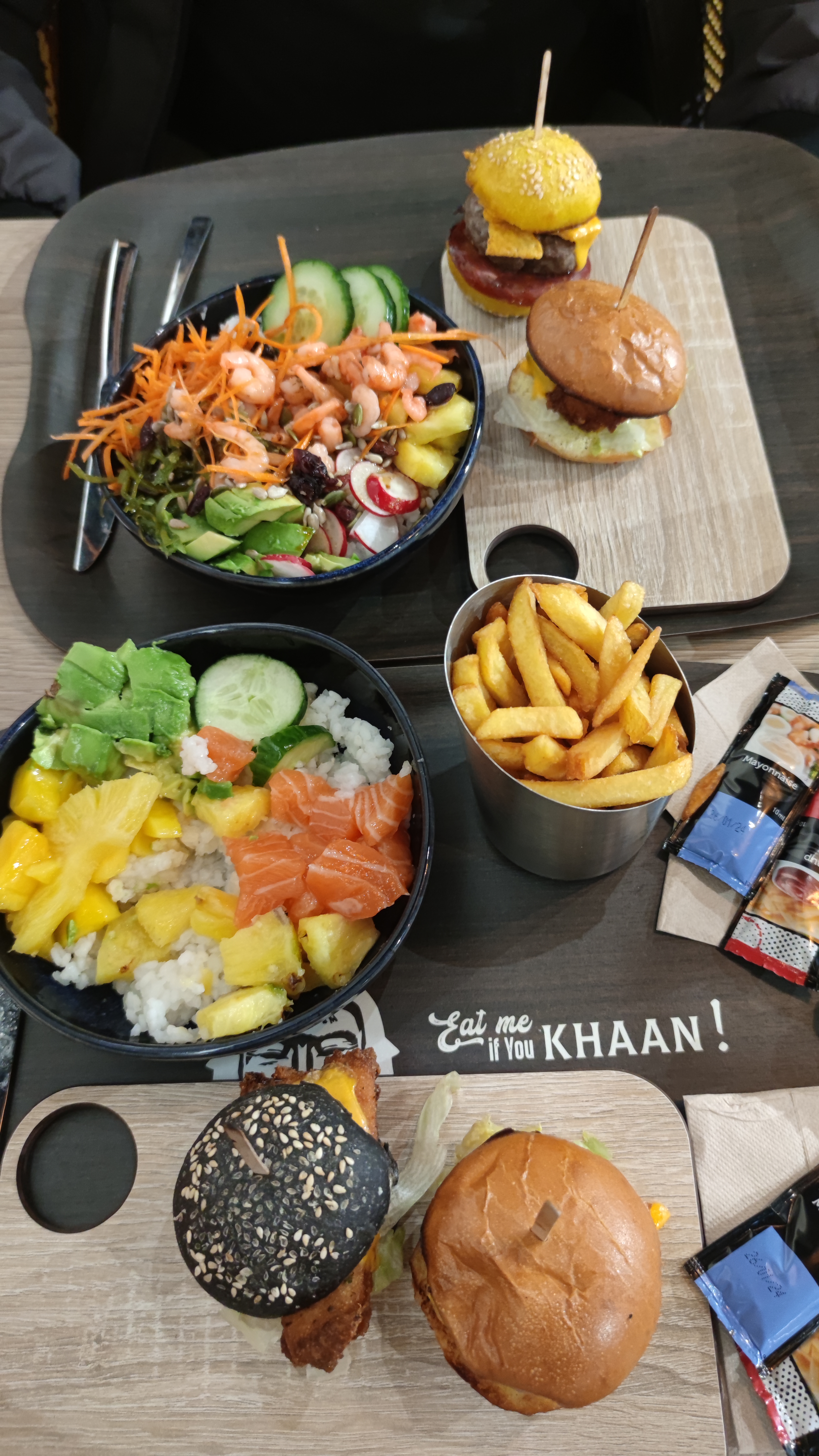 Félicitations à toute l'équipe de Khaan Burger & Poke. Burgers délicieux dans une très bonne ambiance. A tester. Testé et approuvé. Je reviens pour les Pokes.