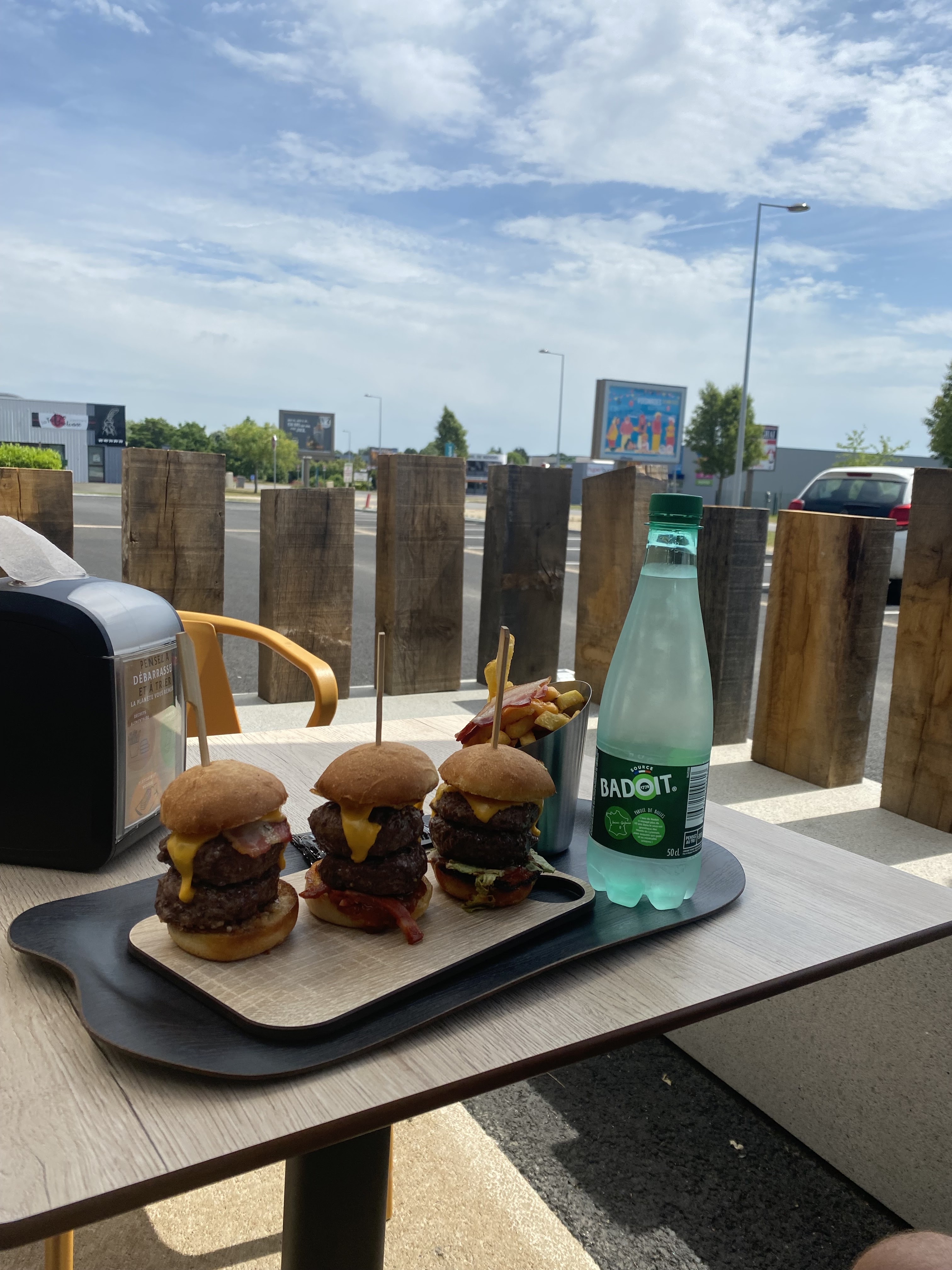 Le personnel sympa et accueillant, service rapide. Par contre un rapport qualité / prix qui n'est pas au rendez vous. J'en ai eu pour 19€ sur mon plateau. Les mini burgueurs sont tres moyens, Celui au beouf a tres peu de gout. Celui au poulet est meilleur. Les frites sont banales et la sauce cheddar dessus incipide. La citronade maison est bonne