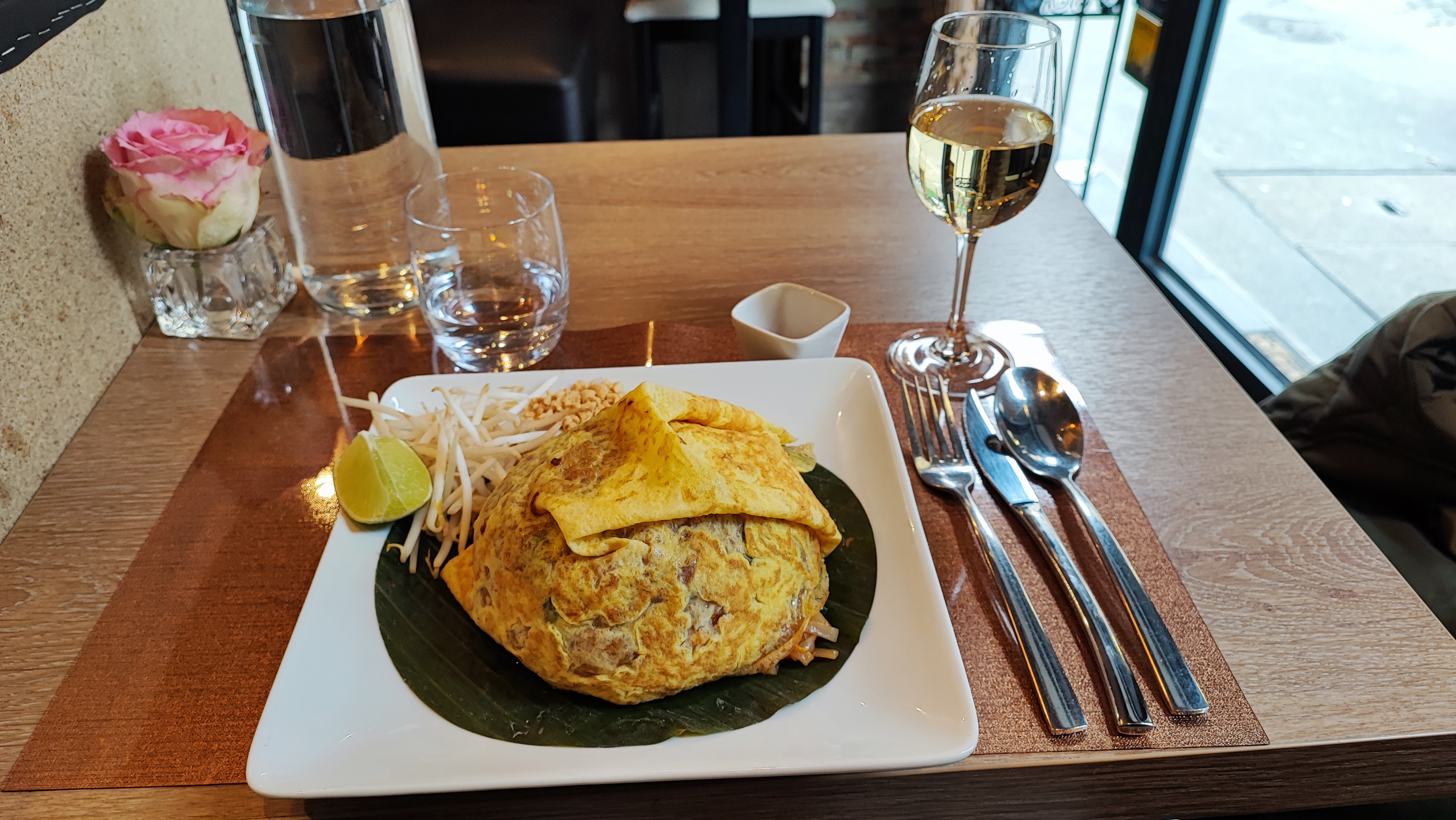petit restaurant à la déco sobre et à l’ambiance calme Accueil chaleureux , souriant Le patron Stéphane est vraiment sympathiques et de bons conseils Le service est rapide et fluide Restaurant qui sert enfin de la vraie cuisine thaïlandaise ! Le pad Thai est à tomber premiere fois que je voie ce style de présentation (enrobé d’une fine omelette) une très très belle decouverte et le meilleur jamais mangé Pour les autres plats la présentation est également très soignée et agréable Les produits sont frais et arrivent chauds ! La possibilité de choisir son degré d épices est fort appréciable Ainsi on ne s’interdit pas certains plats puisque le cuisinier les épice (ou pas) en fonctions de vos goûts Dessert mangue riz Plutôt bon surtout la mangue bien mûre en revanche petit bémol concernant le riz ou il manque du jus de coco pour le rendre moins pâteux idem pour le riz gluant en accompagnement des plats …. Un peu trop compact J’ai hâte de faire découvrir cette petite pépite de cuisine thaï à mes proches