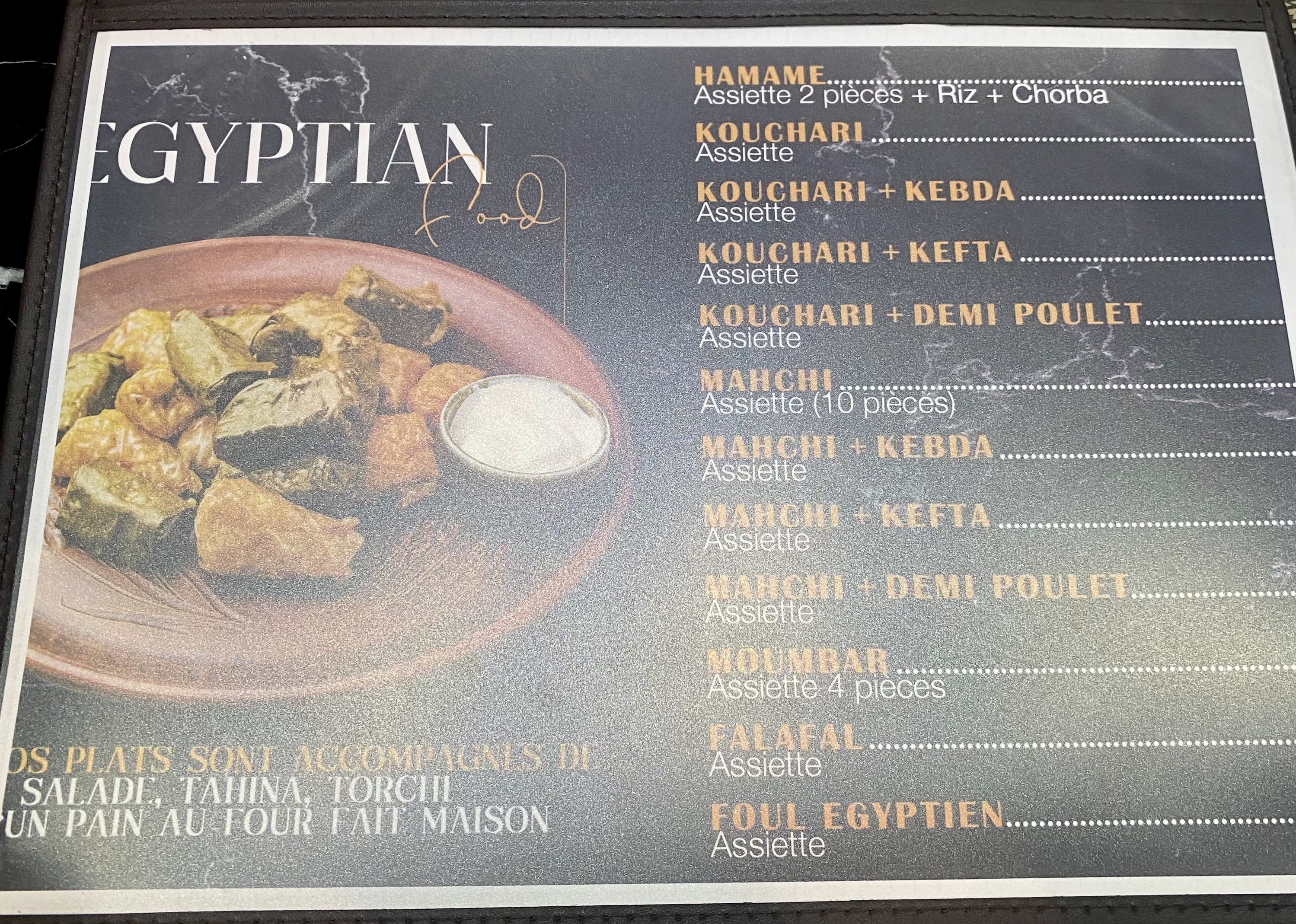 La bouffe est trop bonne c’est la première fois que je mange égyptien et ça ne sera sûrement pas la dernière ! L’accueil et le sourire sont au rendez vous vraiment je recommande !
