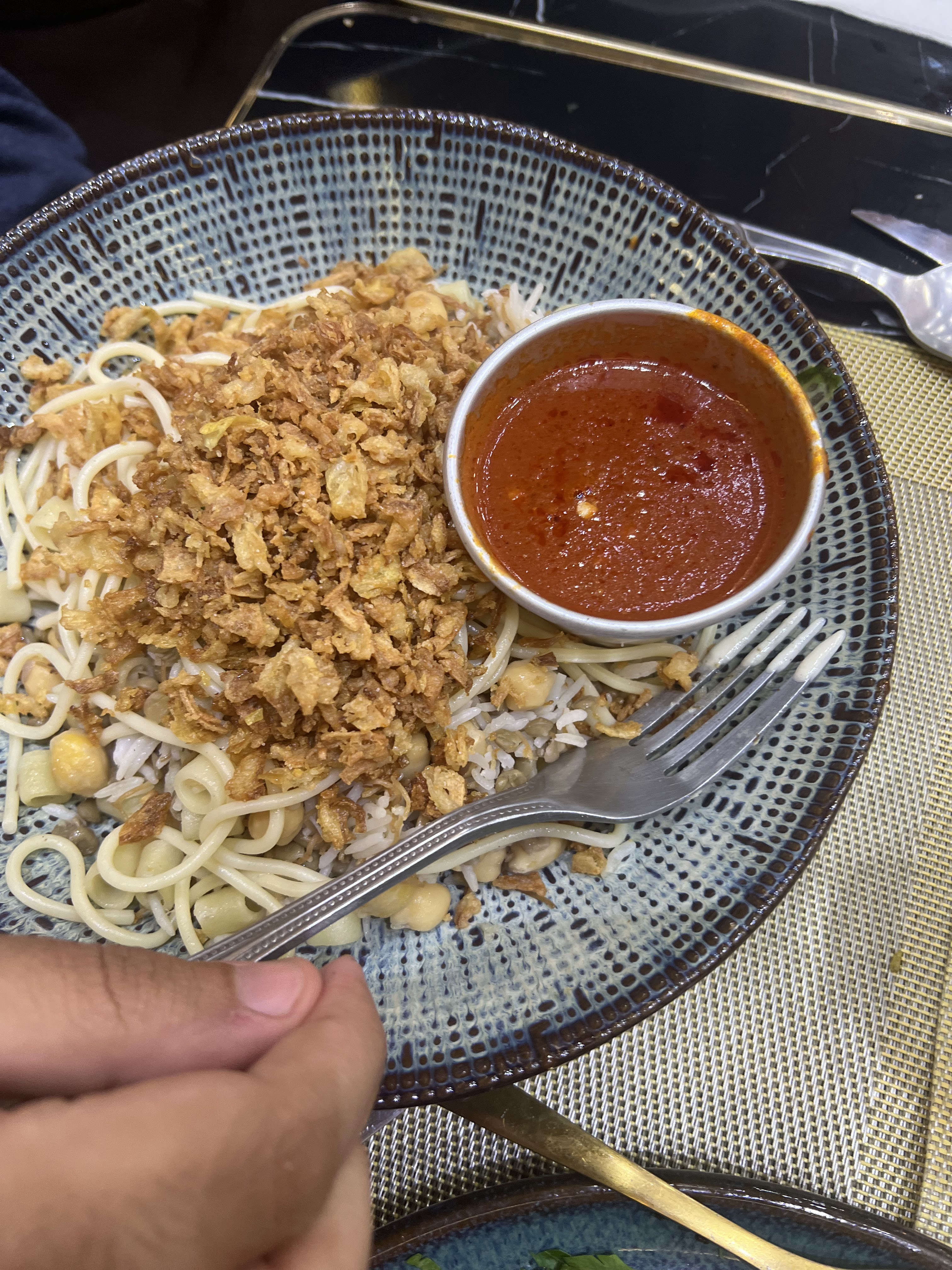 Bonjour, Je vais juger la nourriture en tant qu’égyptien. Pire foul que j’ai mangé depuis mon existence, c’était une bouillie. Marchi et koshari étaient bon. Le pain aucun goût
