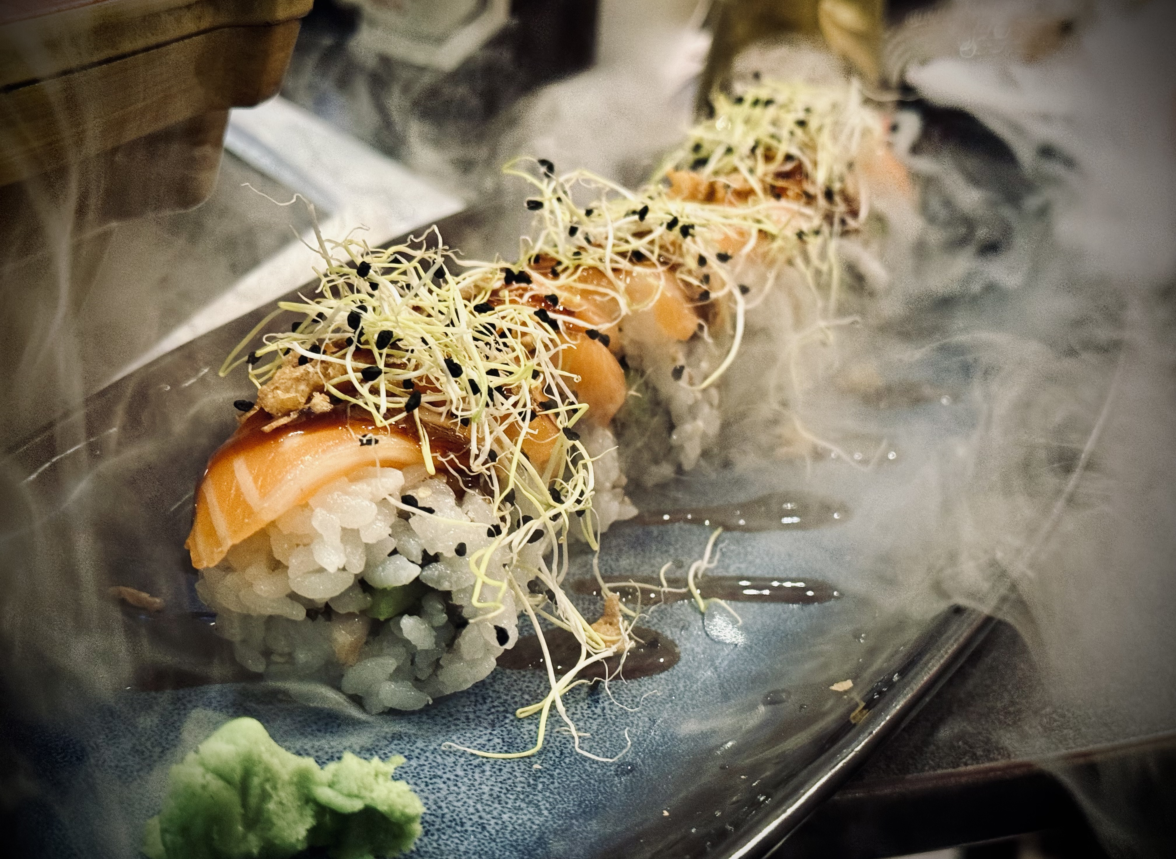 Rainbow Roll, dragon Roll et saumon fumé Roll : Super bon, frais, goûteux. Les portions sont généreuses 😊 On a pu manger dehors c'était très agréable avec les jus bien frais 🙂 Accueil au top ! On reviendra c'est sur.