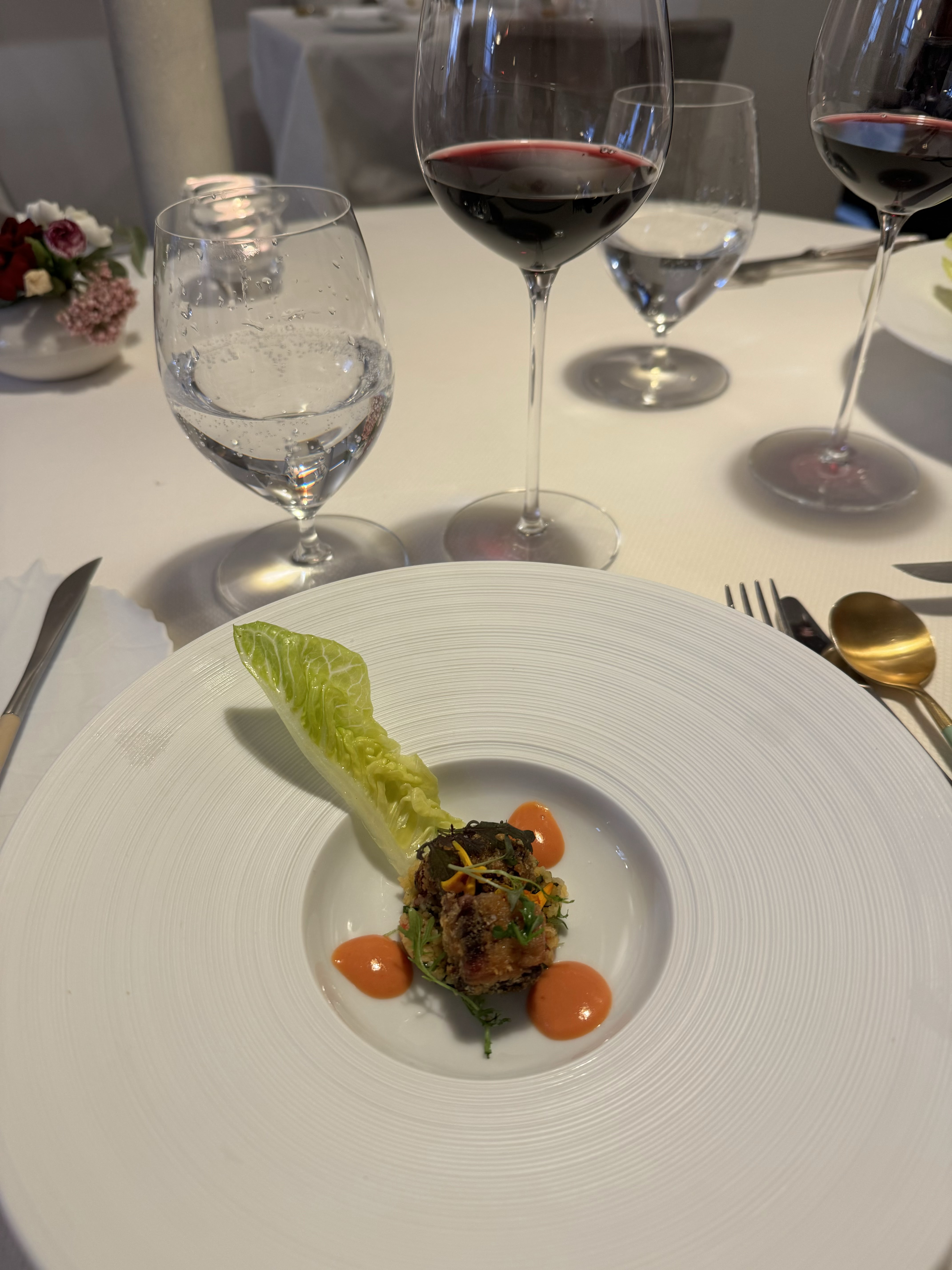 Menu dégustation avec accord mets/vins dans ce petit restaurant si raffiné. Quelle expérience ! La texture, l’assaisonnement, les visuels… tout y était ! Nous reviendrons.