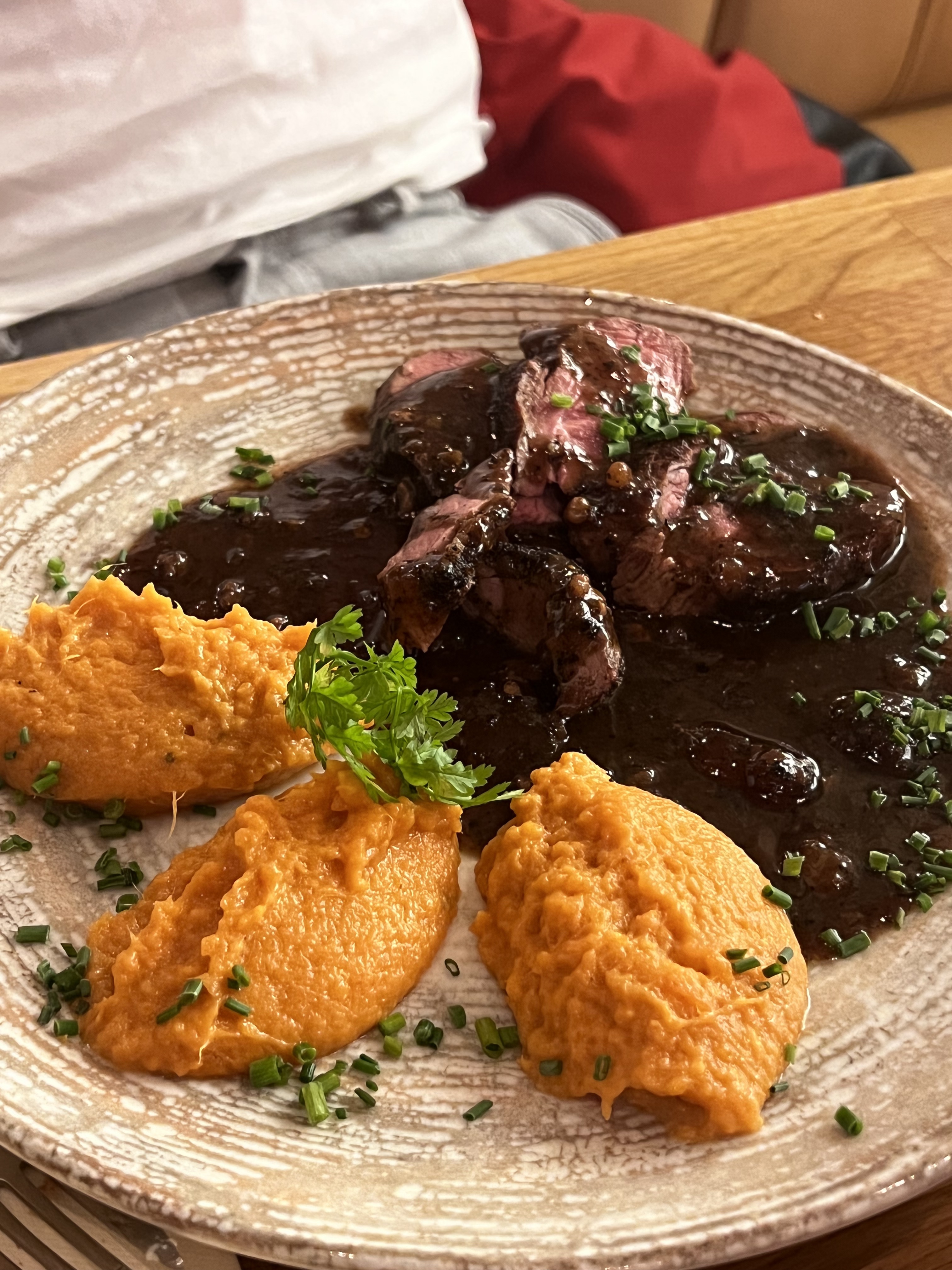 Bonne accueil et bonne ambiance. J’ai adorée le croustillant de chèvre Et une belle pièce de viande pour l’Entre côte je recommande !