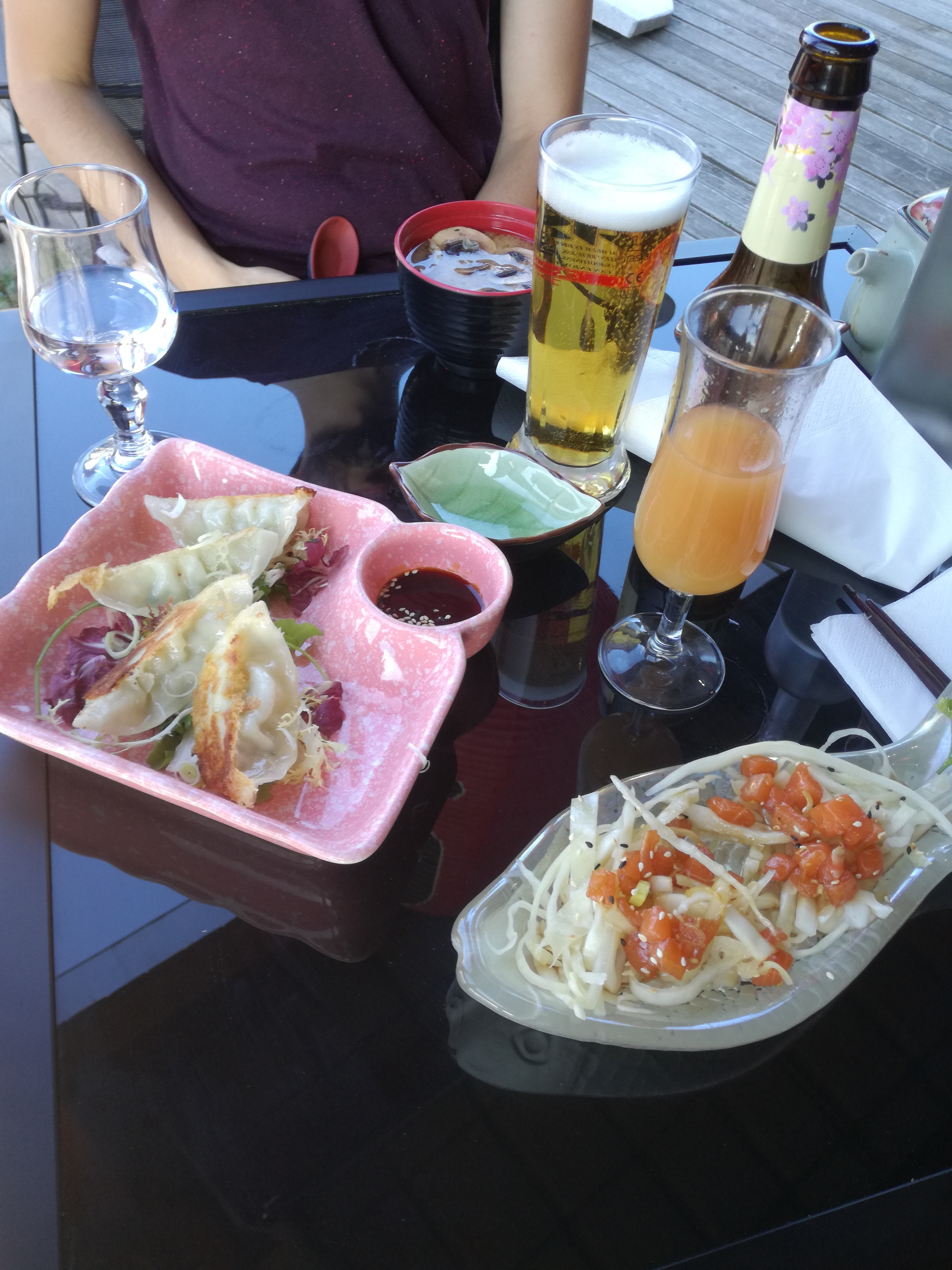 Bon sushi. Bon accueil. Gyoza cuits comme il faut.