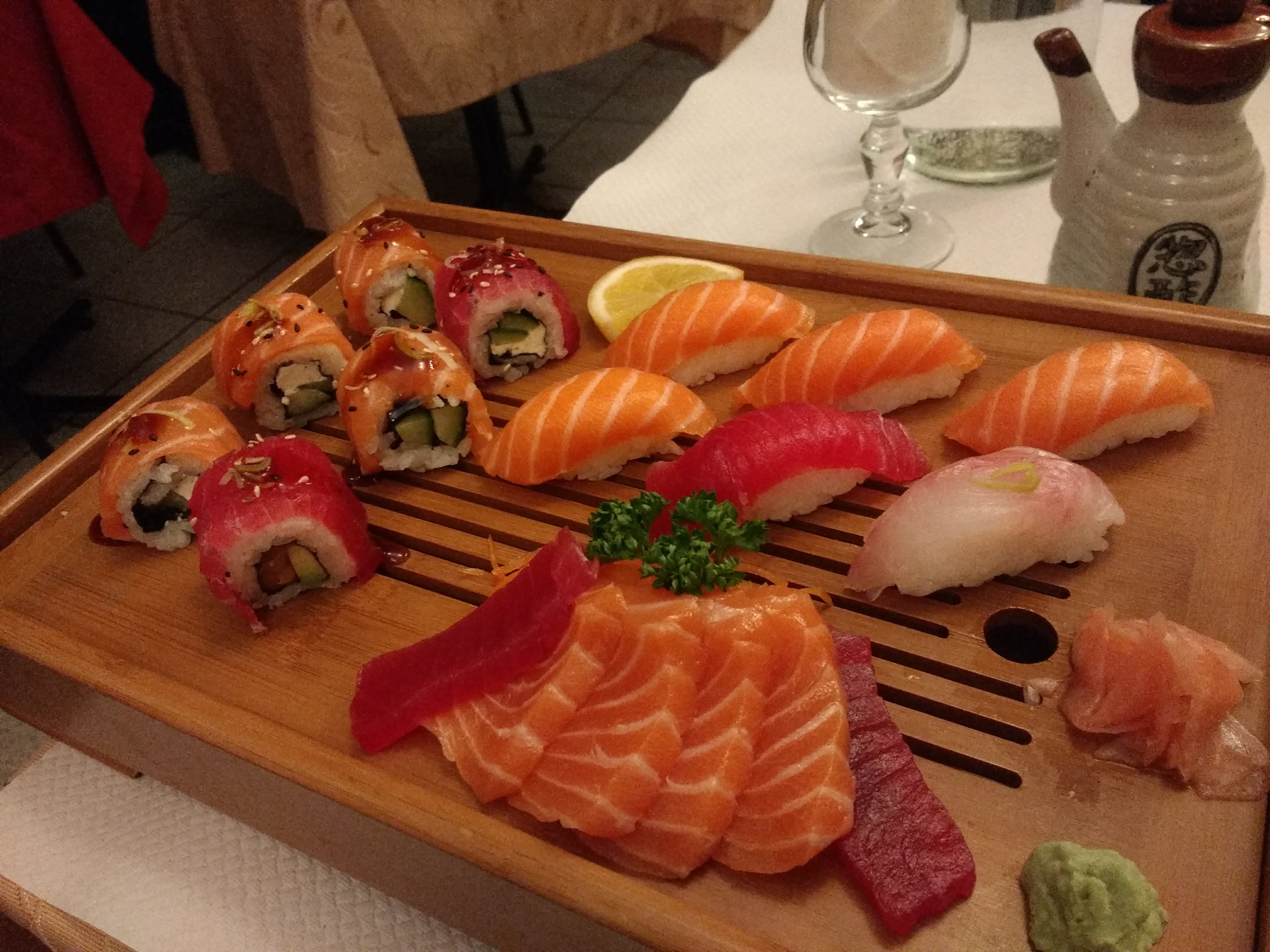 Dans l’ensemble, je conseillerais quand même aux gens d’y aller, même si ce n’est pas vraiment japonais. Les sushis sont préparés et servis par des personnes parlant chinois (comme la cuisine anglaise ouvrant un restaurant français). Les sushis sont bons mais principalement du saumon comme vous pouvez le voir sur la photo. Si vous y allez, essayez le tiramisu ! C'est tout simplement génial et je suis italien. Le tiramisu est la raison des 5 étoiles, pas les sushis :)