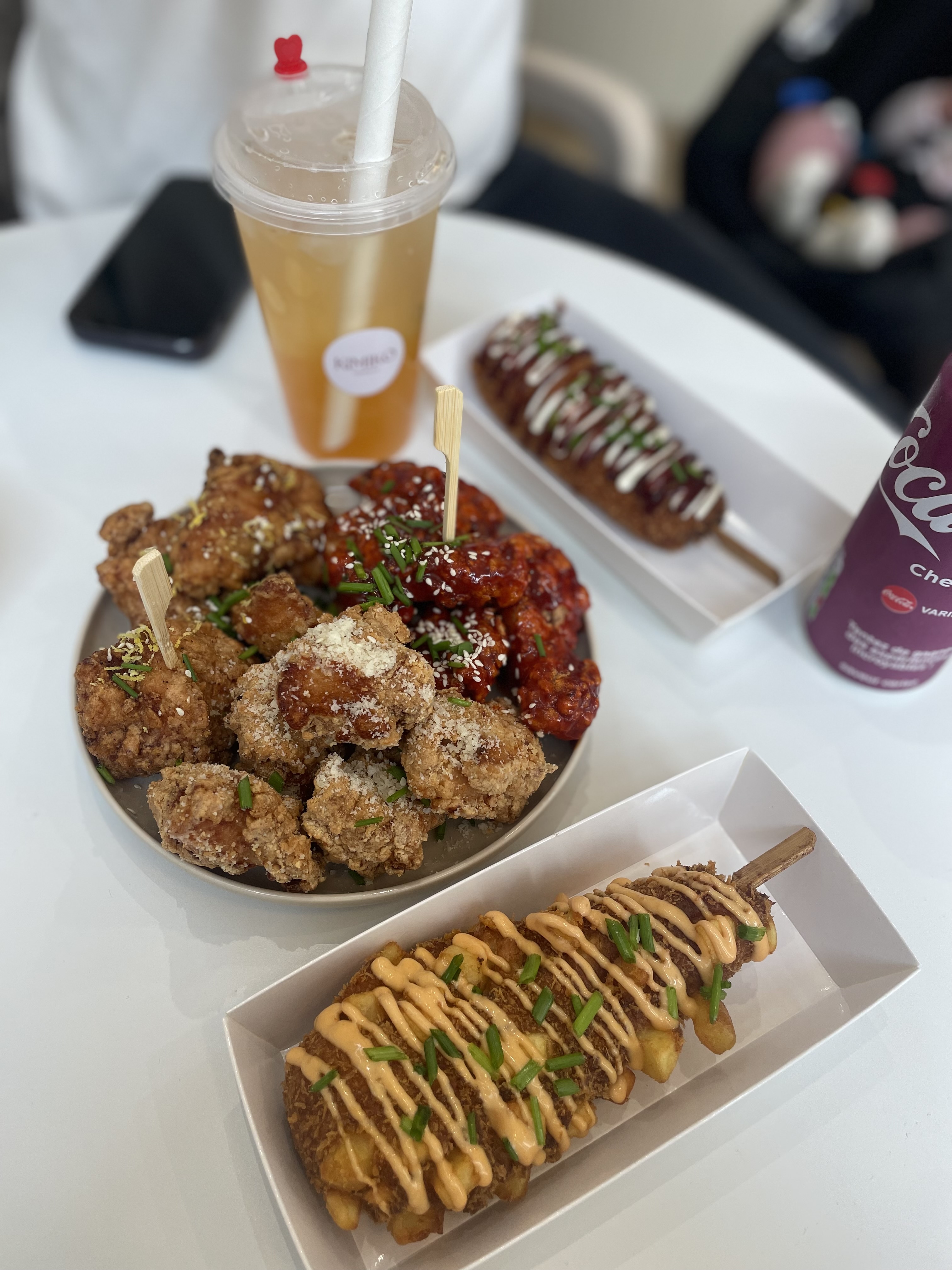 Depuis le temps que je voulais goûter des énormes corns dog, me voilà servi ! On a choisi avec la panure potatoes et franchement, c'était gourmand et très bon. On a aussi testé les poulets frits (boneless) saveur korean et pas du tout déçu. On le recommande sans hésiter, surtout que vous y êtes bien accueilli et servi. Dommage que ce soit petit et un peu à l'écart mais ça vaut le détour.