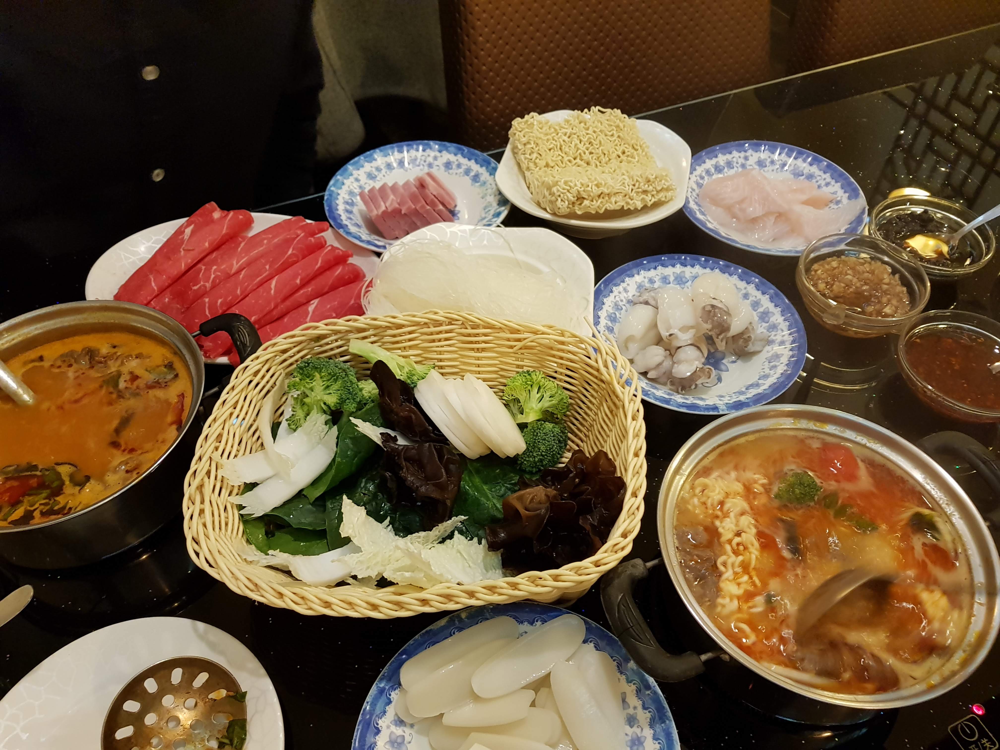 La fondue chinoise une vraie découverte pour un bon repas mais léger entre amis. Du bouillon parfumé, des légumes, du tofu, des fines tranches de viandes ainsi que diverses nouilles le tout à volonté et pour une somme modique. À refaire