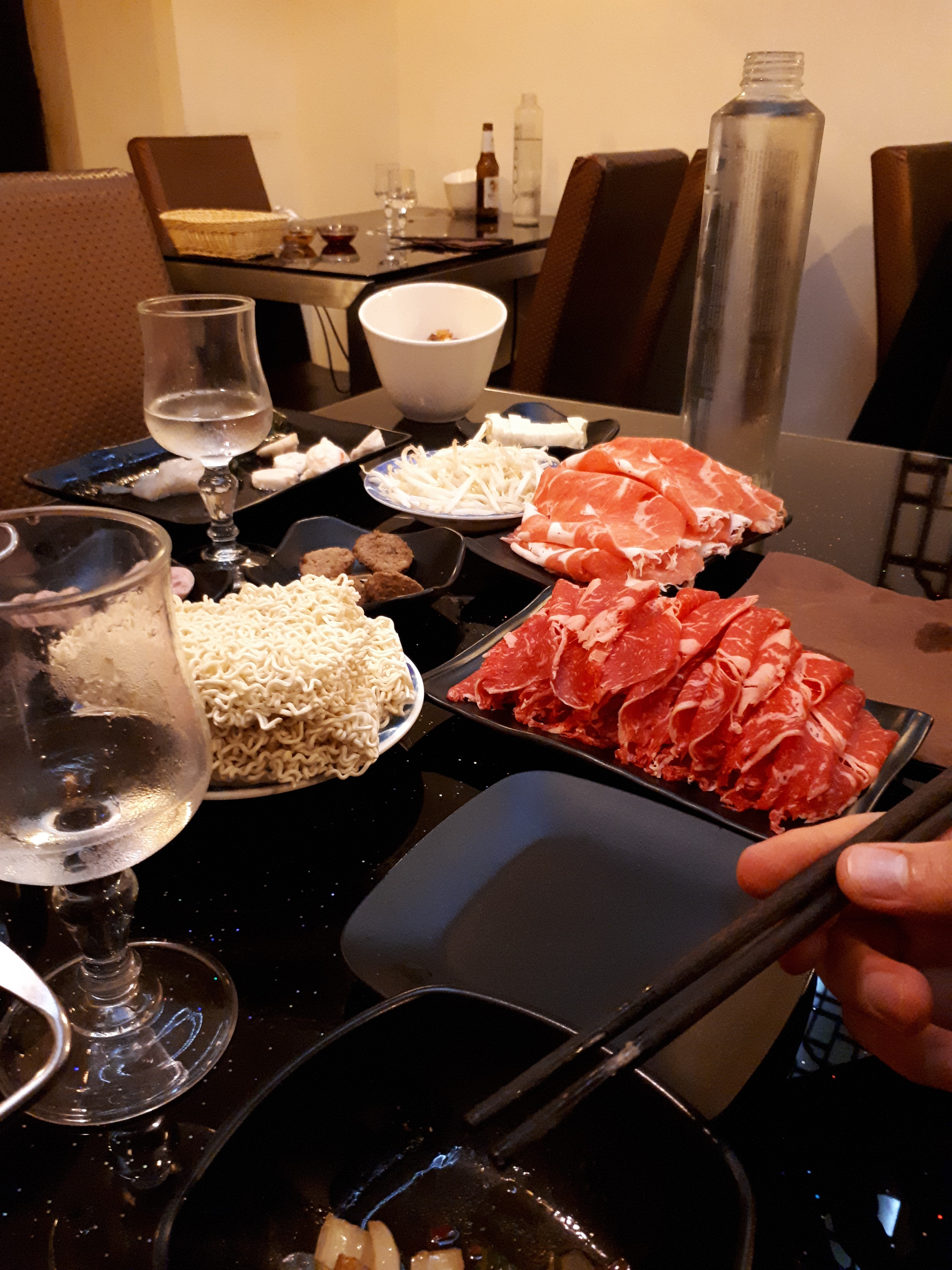 Dépaysement total. Buffet de viande ultra frais , bouillon absolument délicieux . Topissime