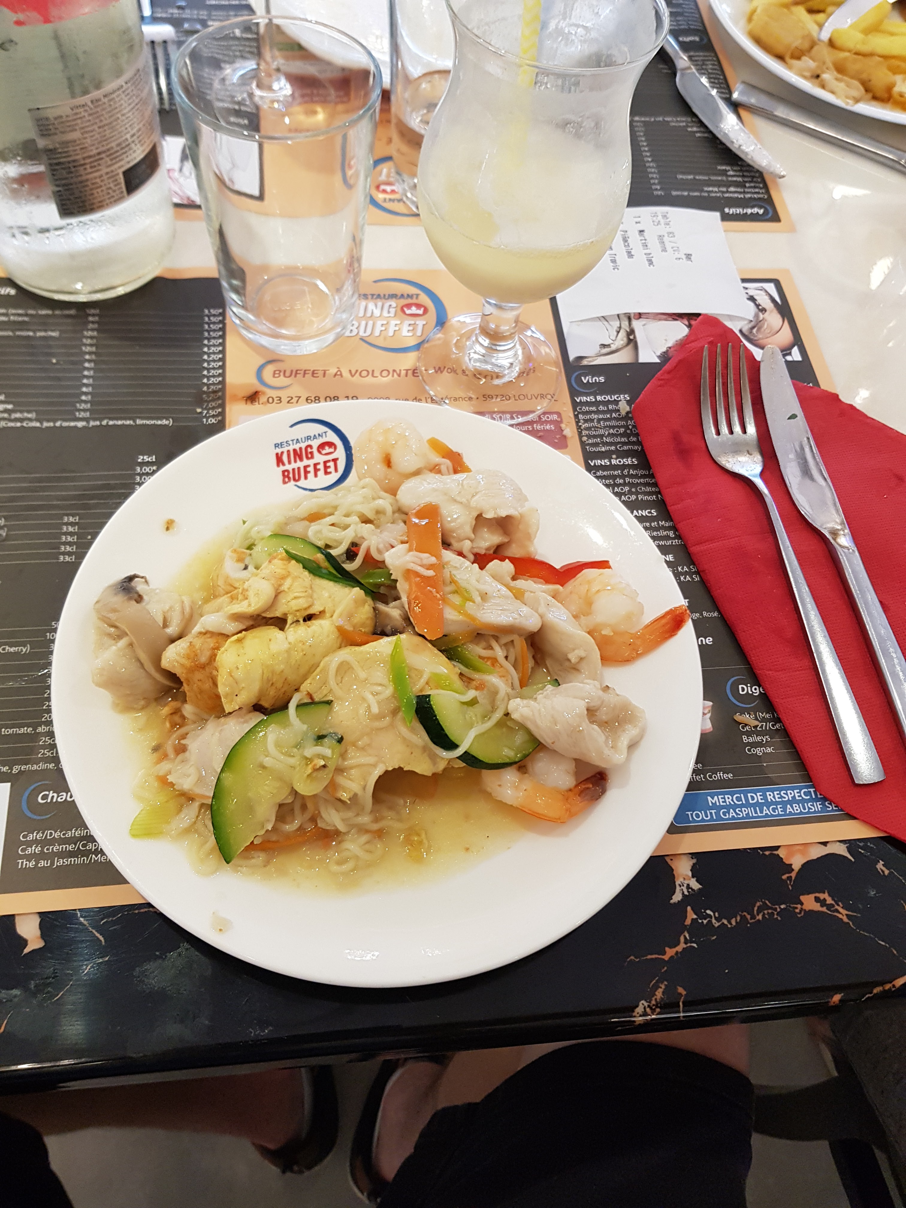 J'aime les resto chinois,mais je trouve que les chaînes de restauration tel que ce king buffet dénature cette gastronomie,certes le buffet est varié,entrées plats principaux et dessert sont en nombre mais ils sont d'une qualité médiocre du surgelé pour la plupart, l'hygiène laisse a désirer dans ce genre d'établissement et attendre une demi heure pour un apéritif acheve le bilan final , allez plutôt dans un vrai restaurant chinois , c'est peut être un peu plus cher mais bien plus qualitatif