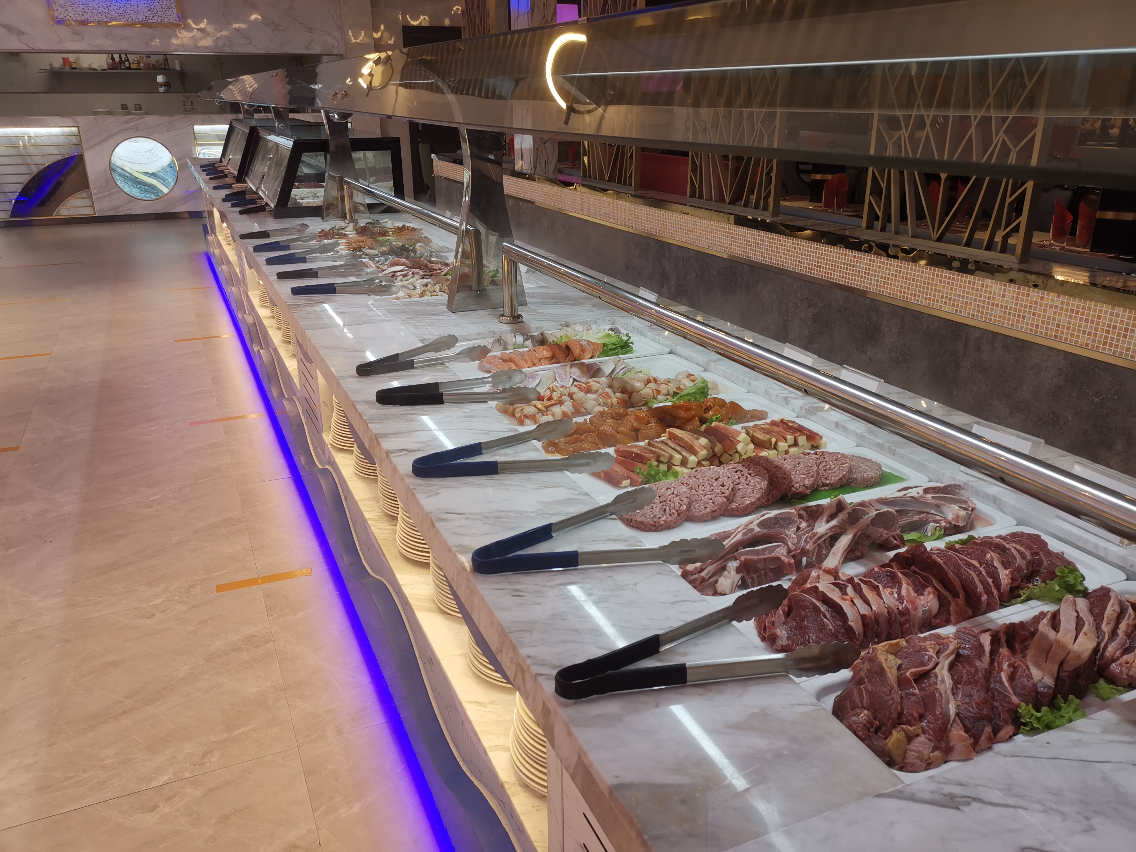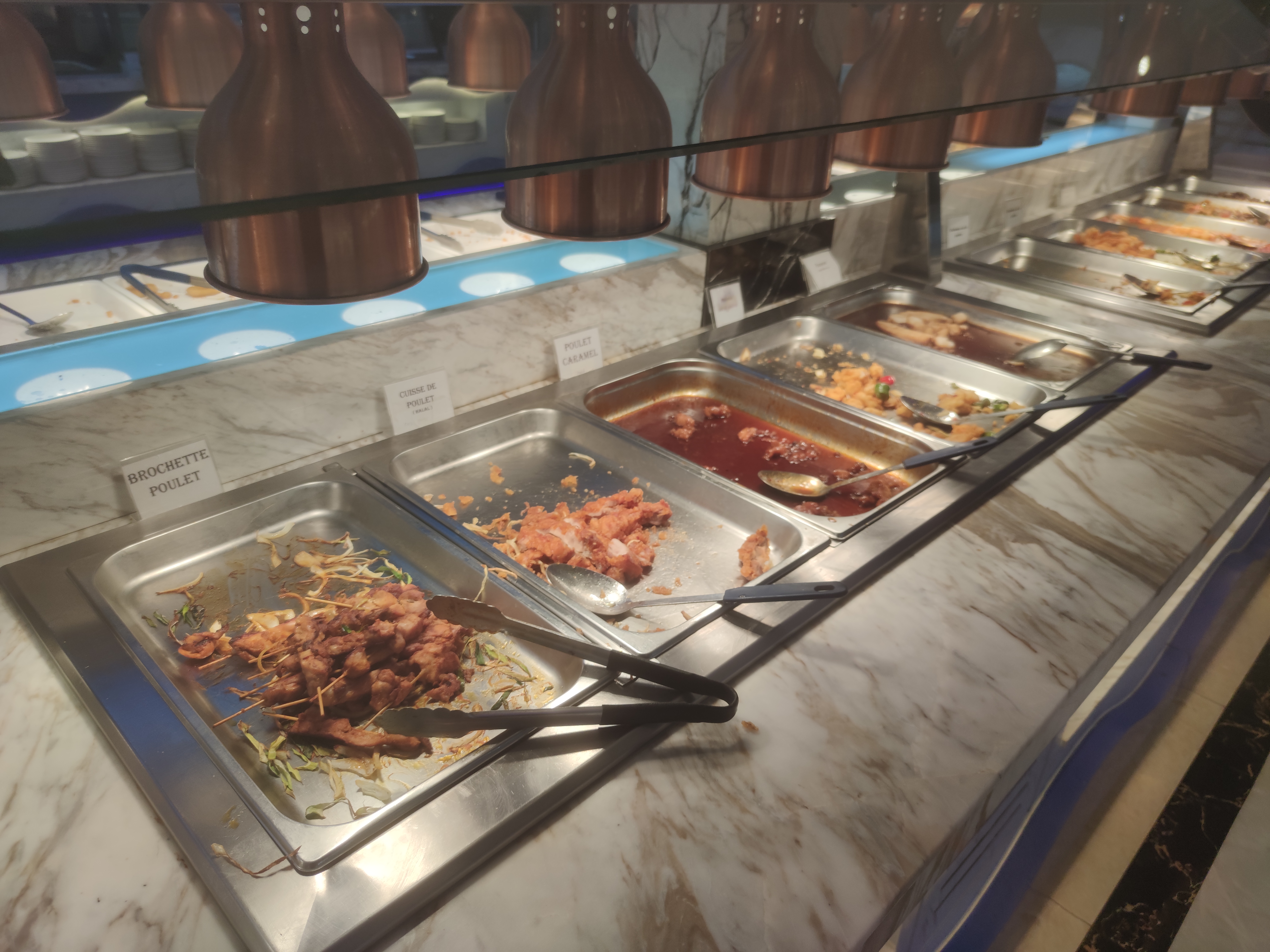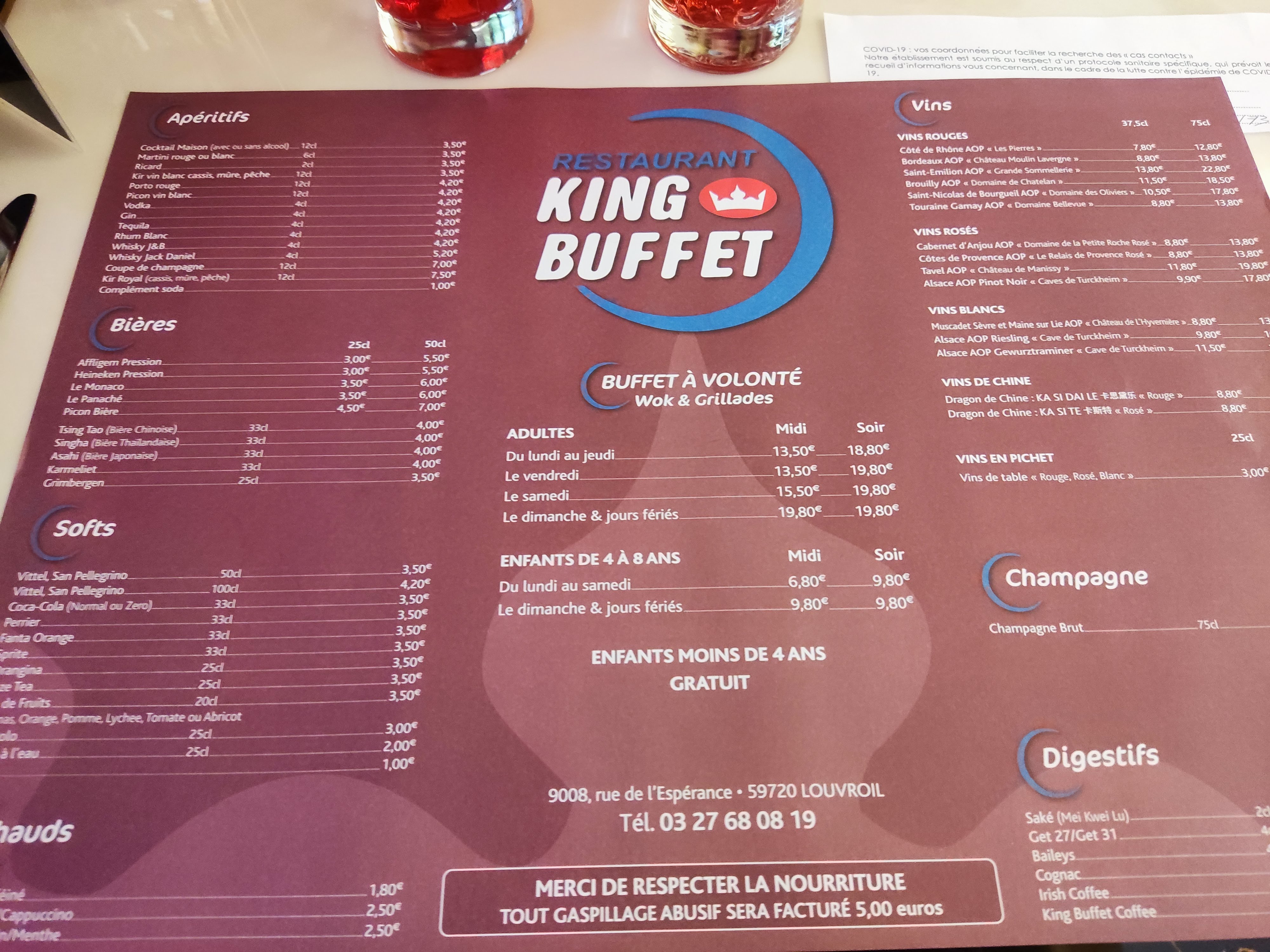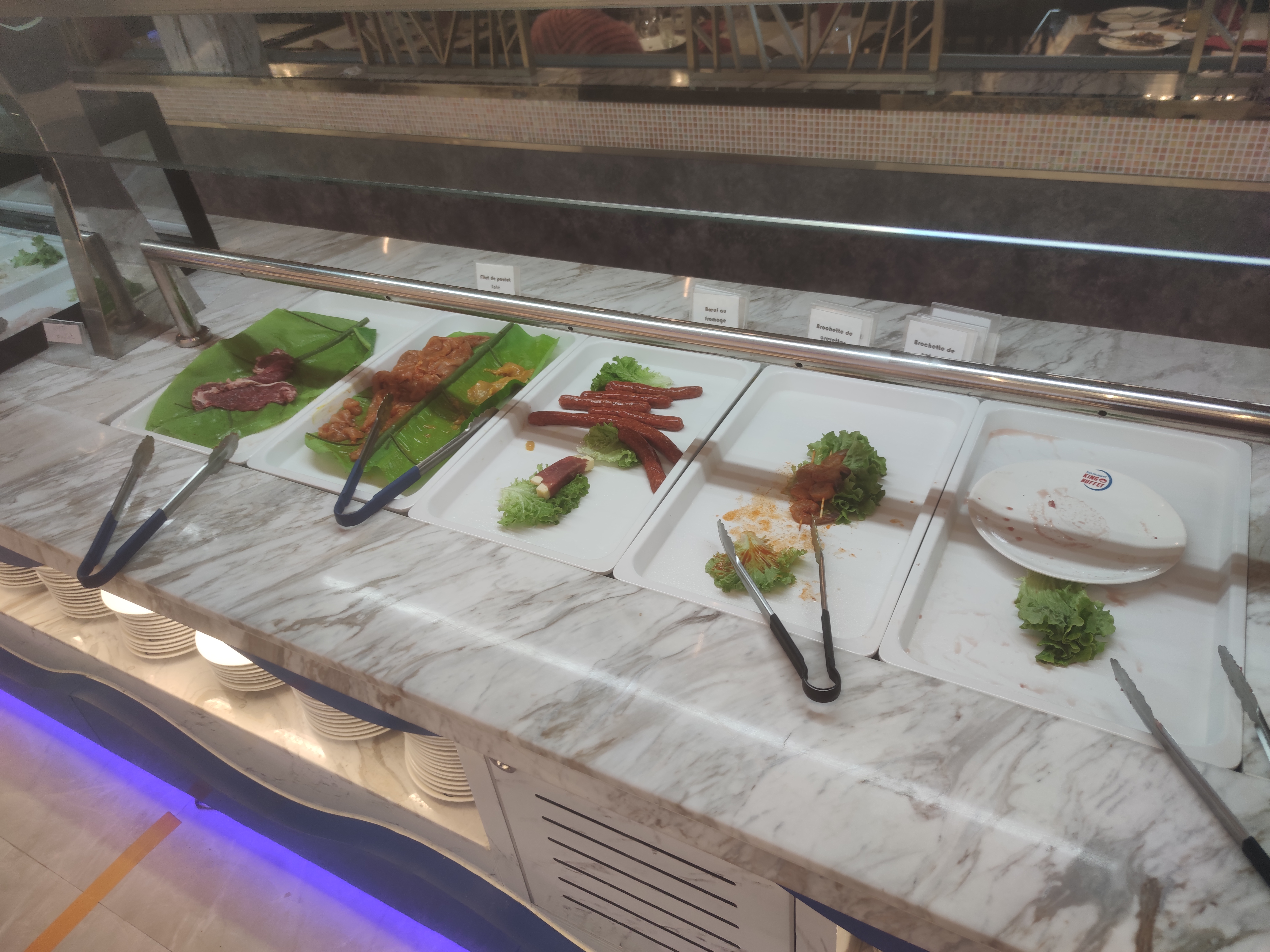 On y retrouve les plats et mets habituellement présents dans les buffets à volonté, cependant en cette période on ne peut que déplorer l'absence totale de contrôle des employés sur le respect des gestes barrières : beaucoup de clients ne se lavent pas les mains, ou vont même au buffet se servir sans masque !