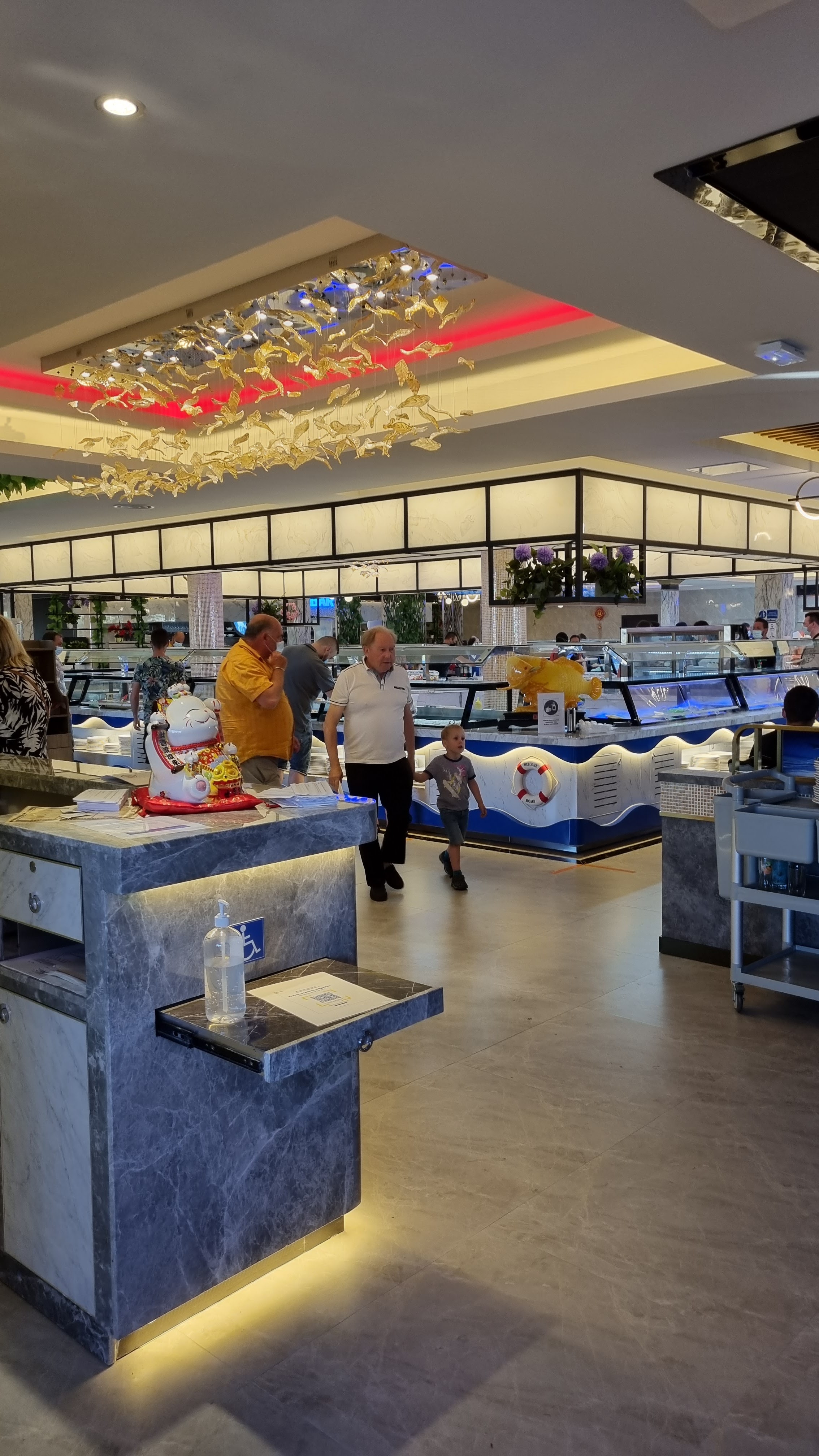 Très grand restaurant chinois un des plus grands que j'ai pu faire beaucoup de plats sont proposés et une panoplie de desserts.Idéal pour les enfants un très vaste choix de bonbons une de marque très connu salle de jeux fermer deux beau écrans avec dessin animé le midi et soir Nous avons passé un super moment table relativement espacées encore merci La seule remarque que je puisse faire en négative et le prix le soir je trouve excessif.