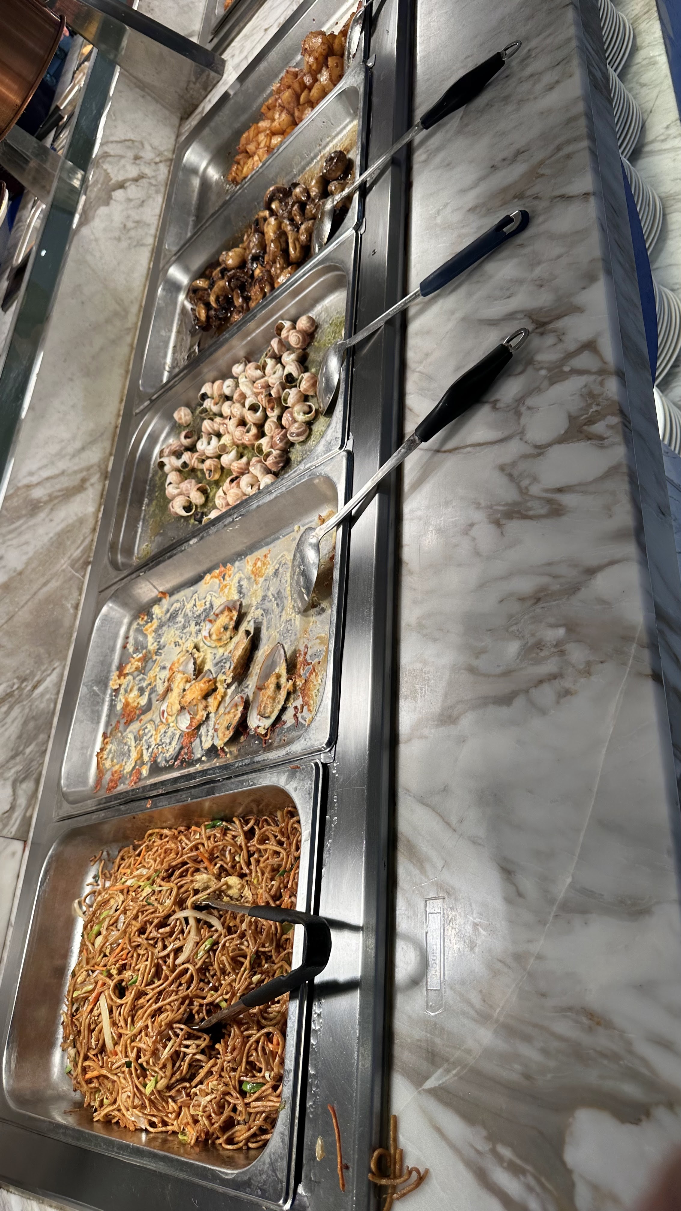 Le service est rapide. Il y a tellement de types d'aliments qu'il est impossible de tous les manger. J'y vais habituellement pendant la journée, mais j'aimais y aller le dimanche j’ai trouvé que il y ait plus de types de sashimi & etc. (Mais les huîtres doivent être un peu plus fraîches) , et même si vous n'allez pas en Chine, vous pourrez en profiter autour d'une table ronde 🥢 comme si vous étiez réellement en Chine. C'est une expérience agréable avec mes amies Merci de m'avoir offert mon gâteau d'anniversaire 🙏🏻🎂et aussi pour l'événement surprise (chanson)
