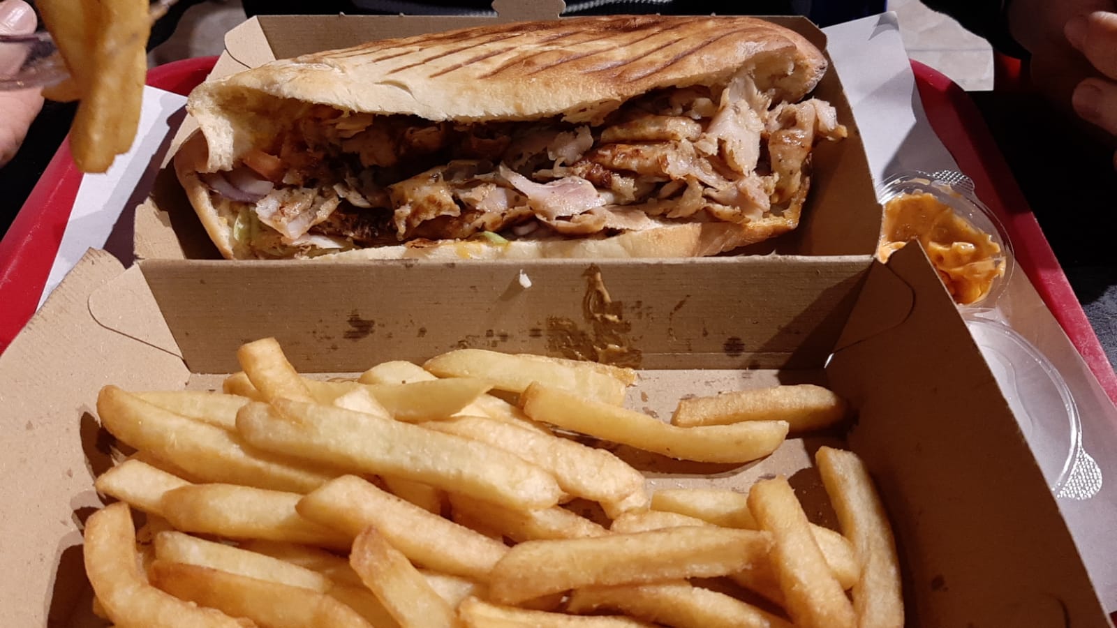 Bon accueil. Service très rapide. Sandwich très copieux pour le prix. Dommage pour la sauce blanche industrielle quand j’aurais apprécié une « vraie sauce blanche ».