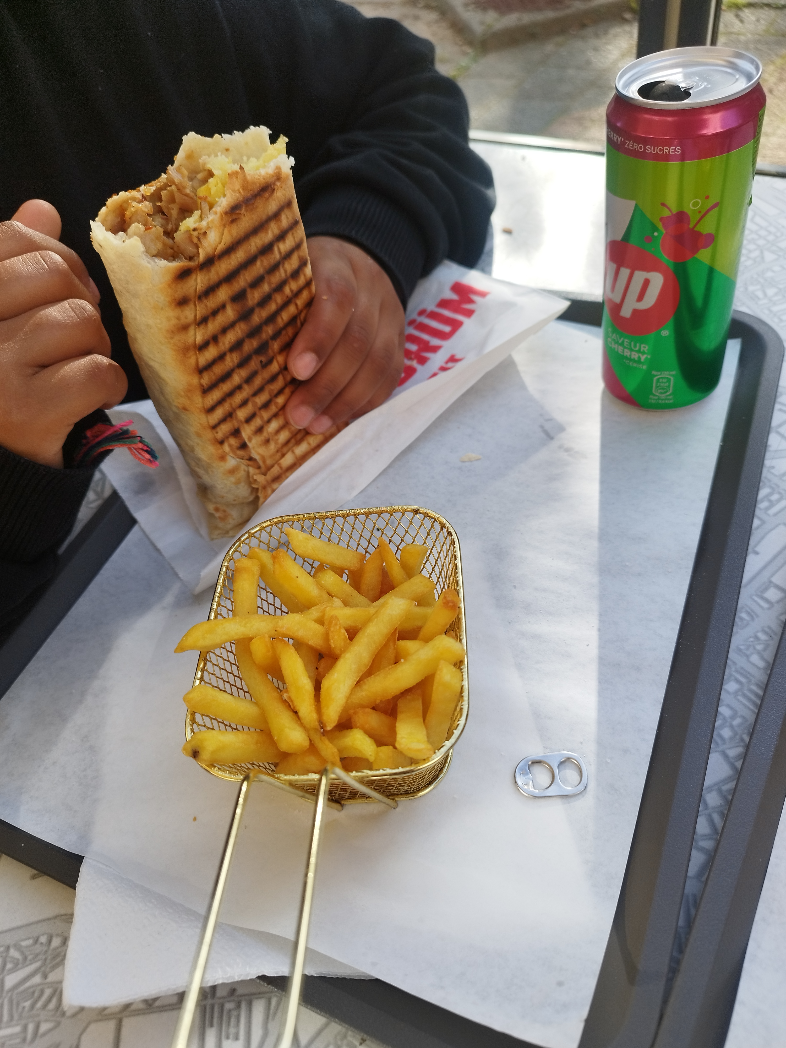 Première expérience aujourd'hui : un kebab complet demandé avec crudités il y avait rien juste viande , Un tacos cramé à l arrière gout prononcé en bouche panini sec et le tout sans frite pour 6€ je trouve chère ,pour ce prix j ai la même chose au kebab voisin et avec frite. Donc je ne reviendrai pas et je vais rester ou j ai l habitude de me servir!!!
