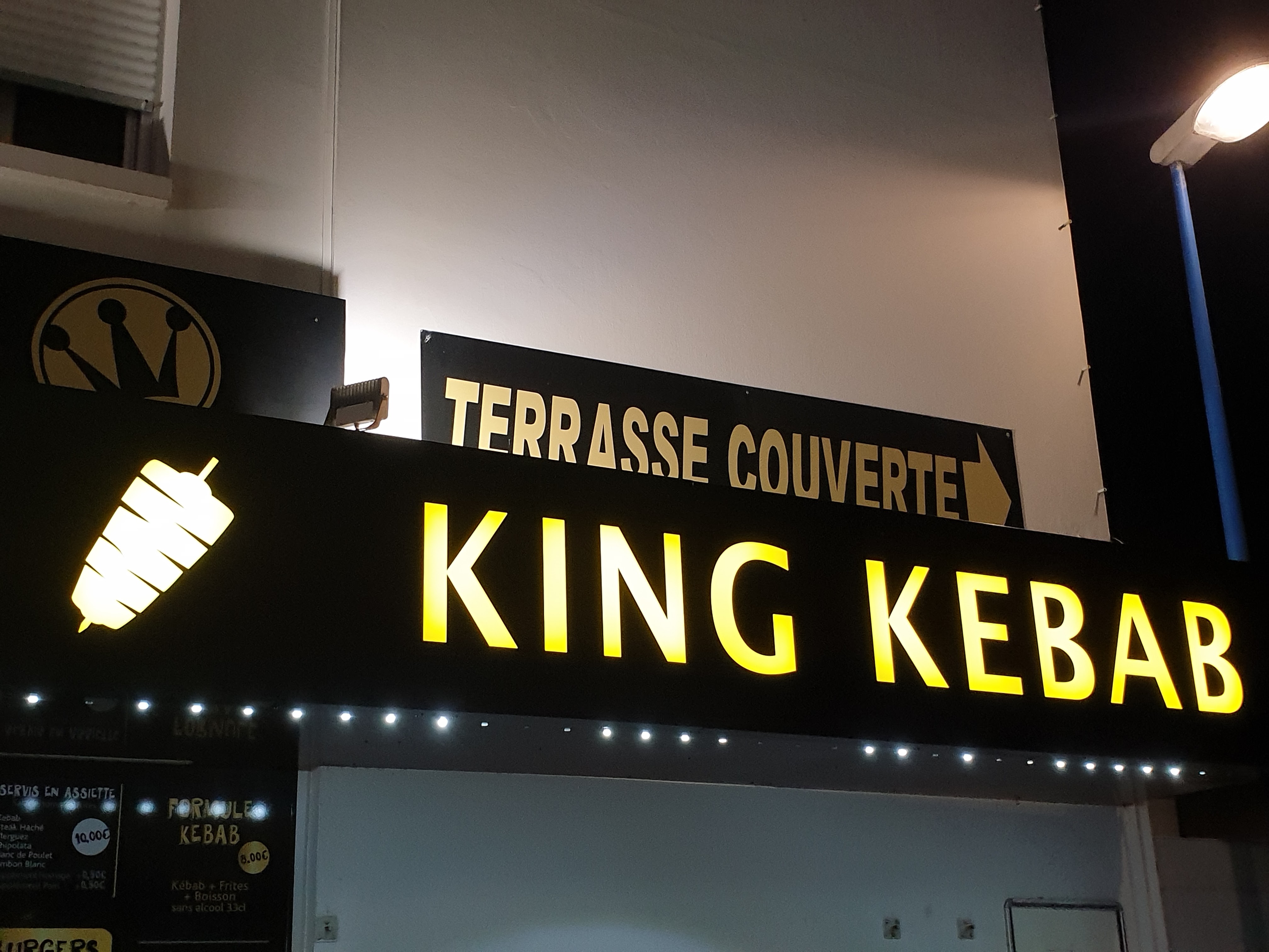 Le nom KING est une erreur! Pour ma part j'ai pris un américain! Pain dur, steak pas bon, frites sans commentaire! J'en ai manger qu'une boucher ! Mon ami à pris un kebab et na pas aimer du tout. Mais le personnel est sympa rien à dire !