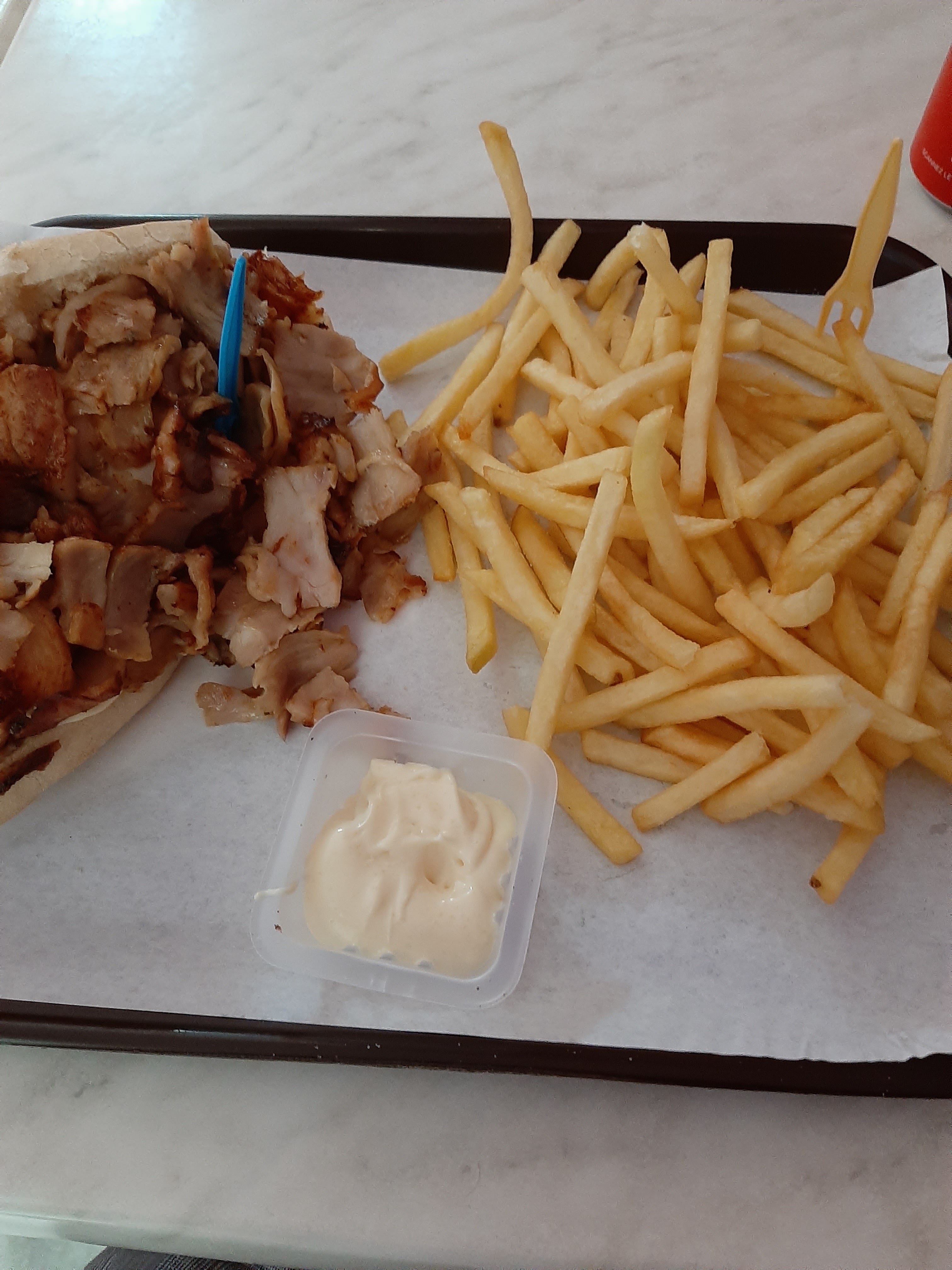 Je demande un kebab et une grande frite, je me retrouve avec un kebab, une petite frite et une grande frite. Et la viande est coupée à l'avance. C'était mieux avant.