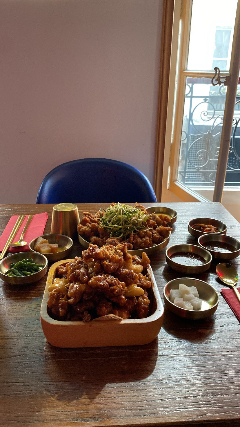 Super poulet frit et nourriture coréenne. Bonne portion, dommage que les tables soient aussi proches entre elles - peu d’intimité.