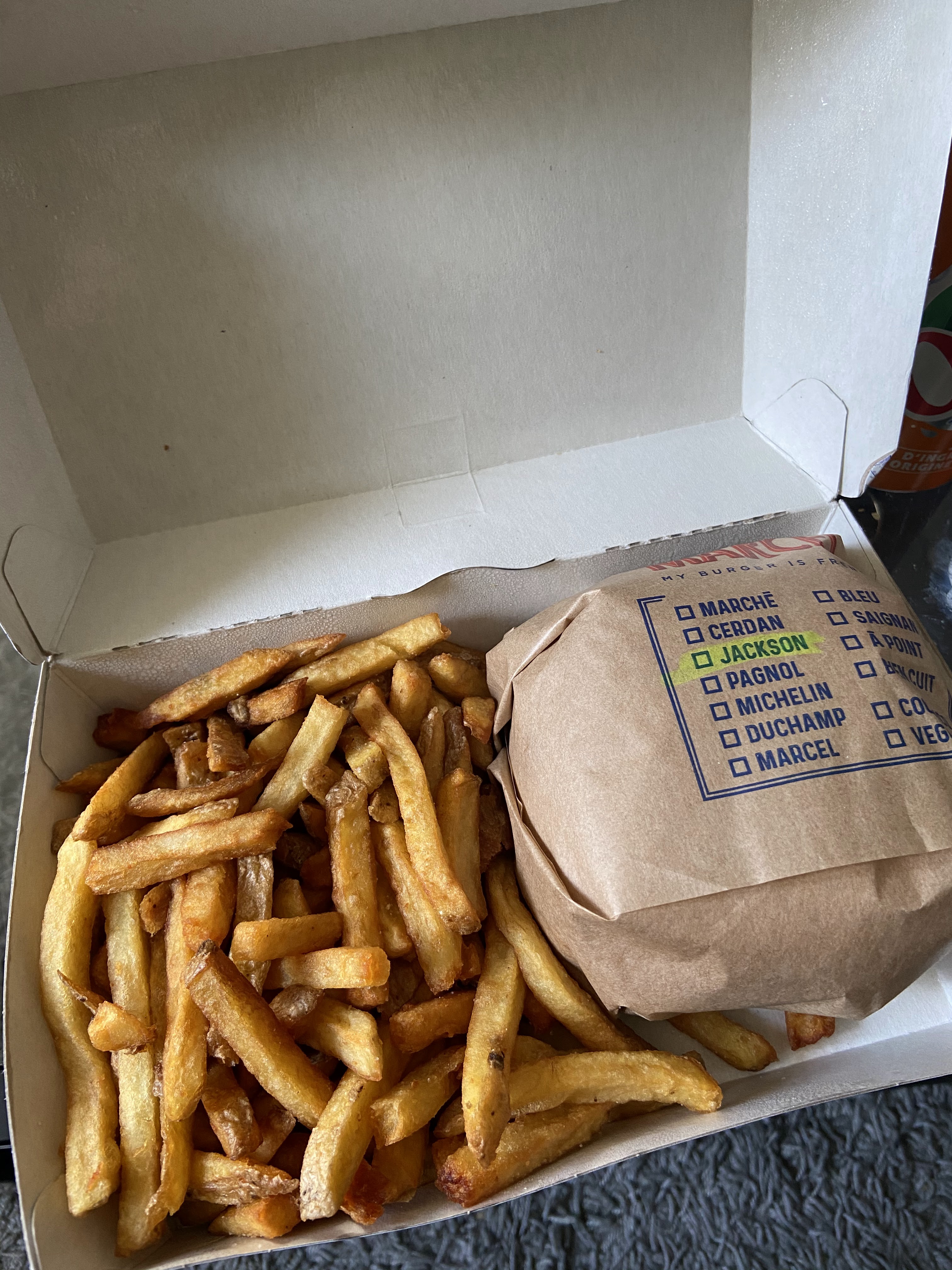 Merci la Saint Marcel ! Non vraiment, des burgers et des frites vraiment bonnes . J'ai beaucoup aimé le goût. C'est un peu cher mais pour le coup ça en vaut la peine.