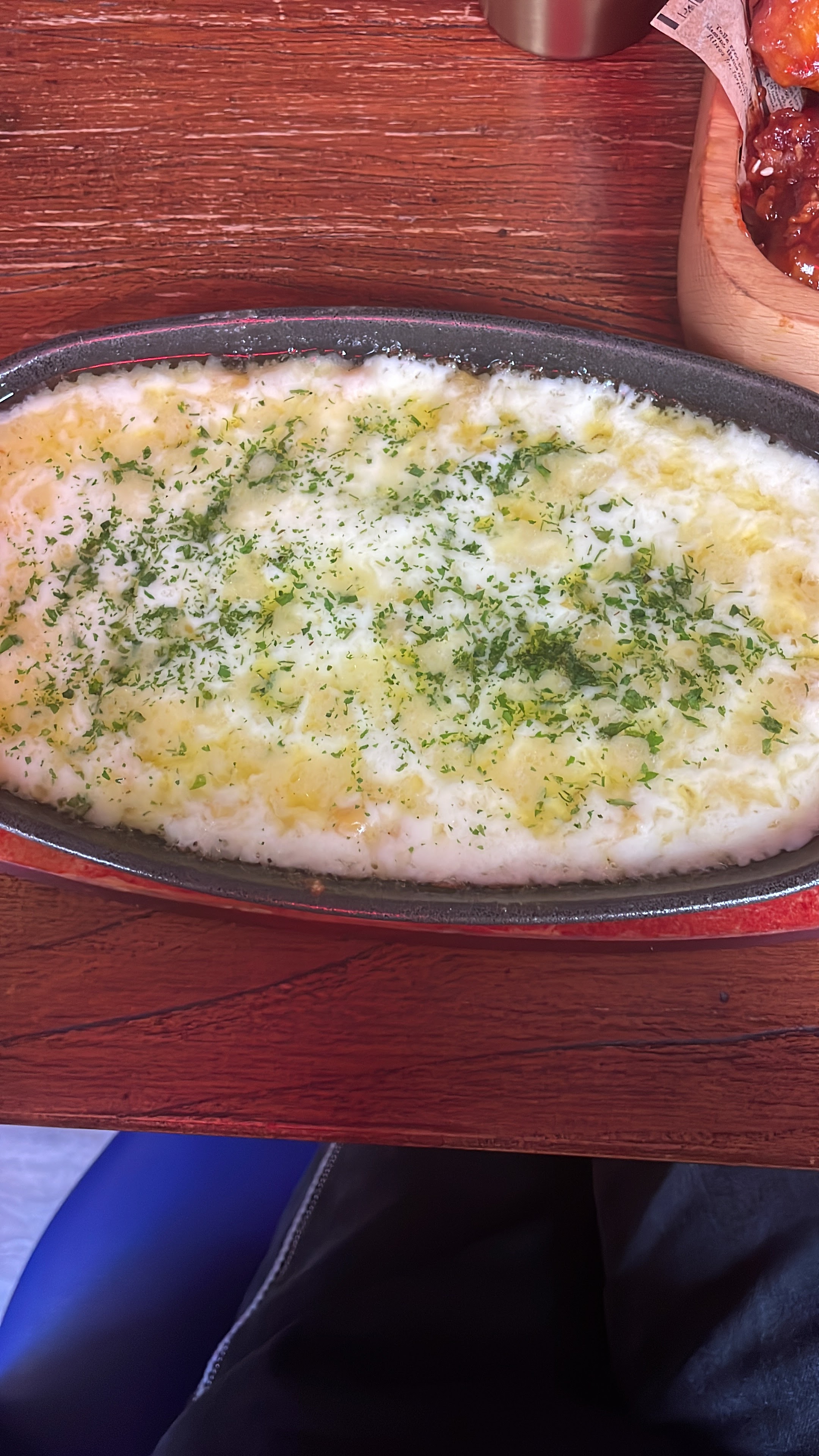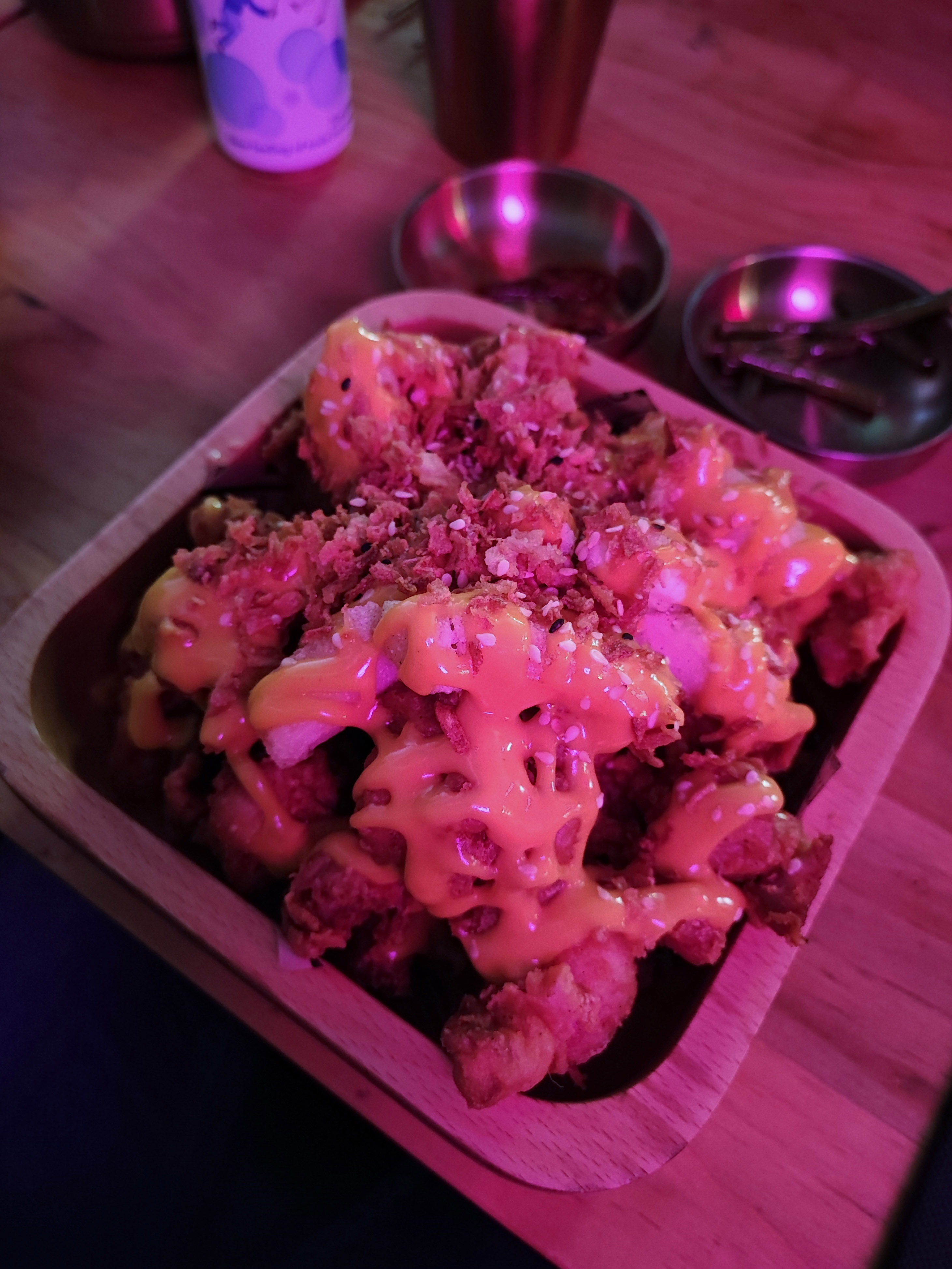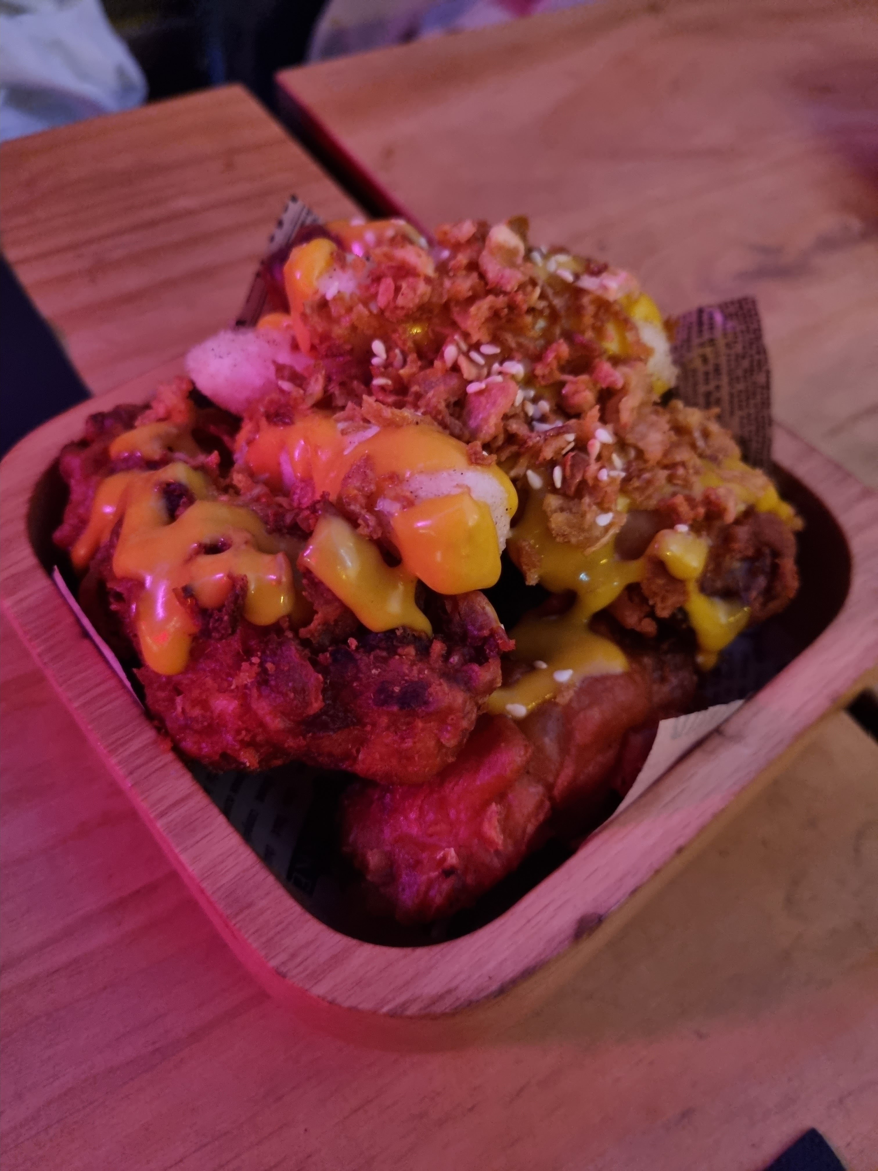 Restaurant très sympa ! Y’a une bonne ambiance, la déco est sympa. Mais y’a une forte odeur de nourriture et le service est un long et pas incroyable. On a commandé du poulet frit, 12 pièces de wings à 19€ en sauce aigre-doux soja : j’ai bien aimé car il y avait la bonne quantité de sauce, elle était bonne, le poulet était bien croustillant et les morceaux étaient plutôt gros ! Le corn cheese à 14€ n’était pas mauvais mais pas incroyable non plus et plutôt écœurant sur la fin, ça fait un mélange sucré salé. Les bols de riz à 3€ ne sont pas petits aussi ! Mais au final c’est assez cher