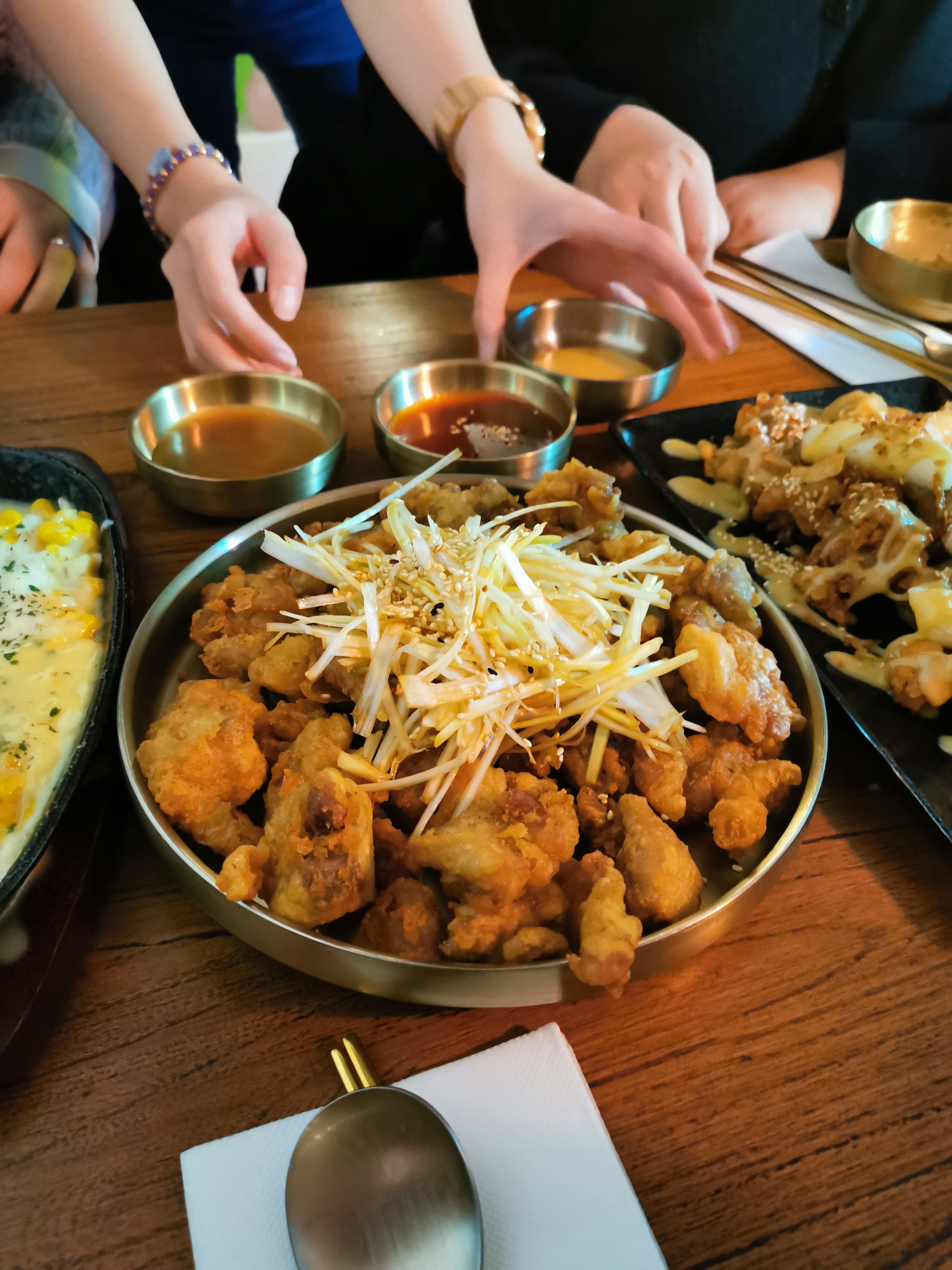 C’était ma première expérience en nourriture coréenne et c’était délicieux. J’ai adoré le poulet frit, le corn cheese et le kimchi, les goûts sont très variés - le personnel est très gentil, l’ambiance est bonne et l’attente n’est pas très longue. Je recommande !