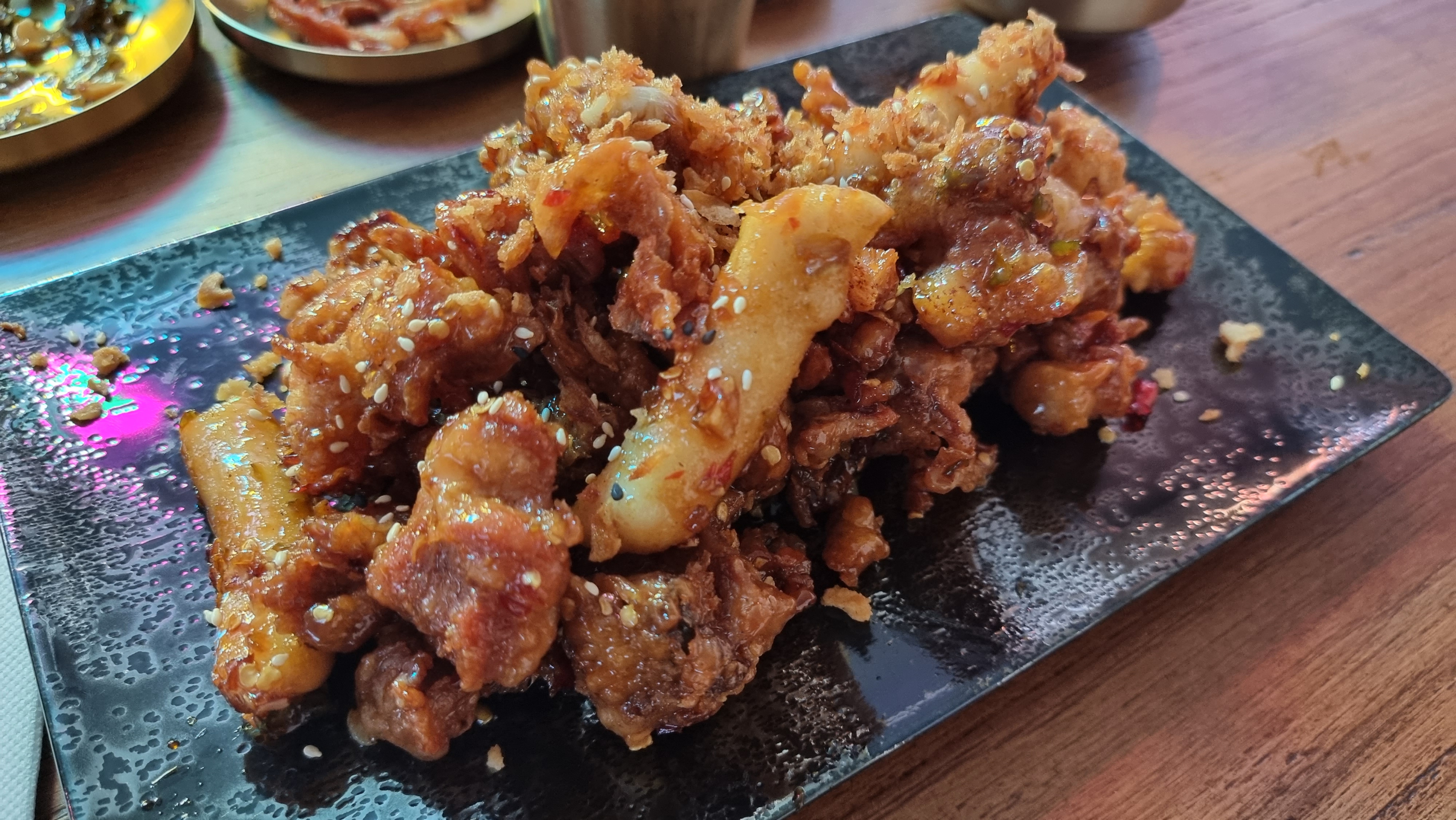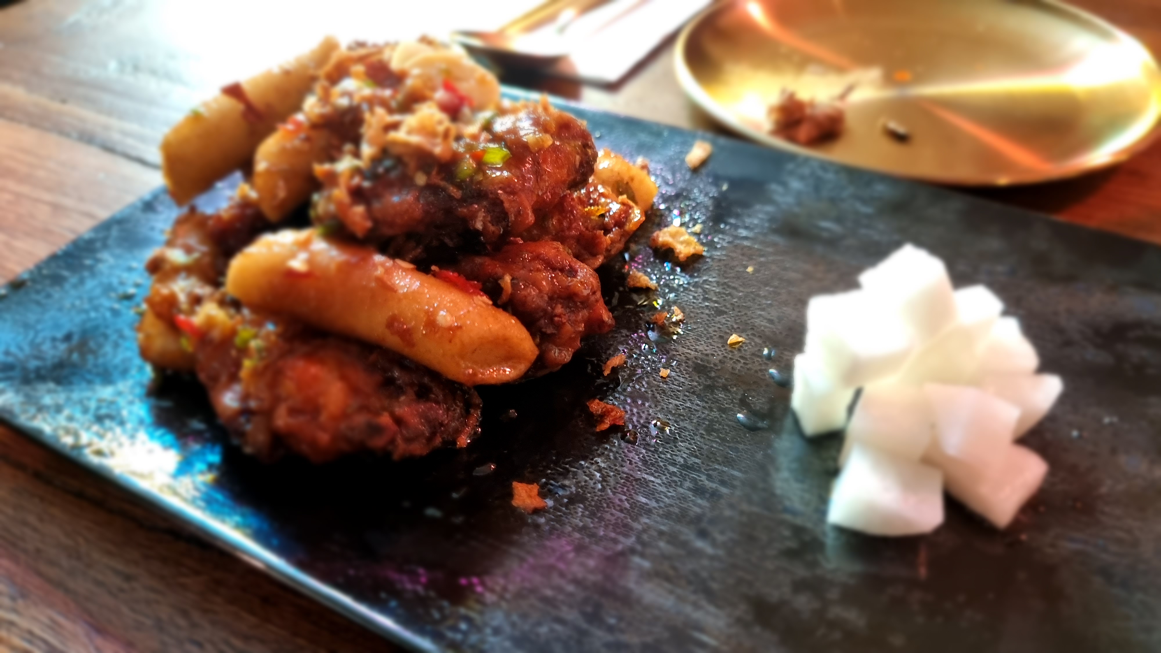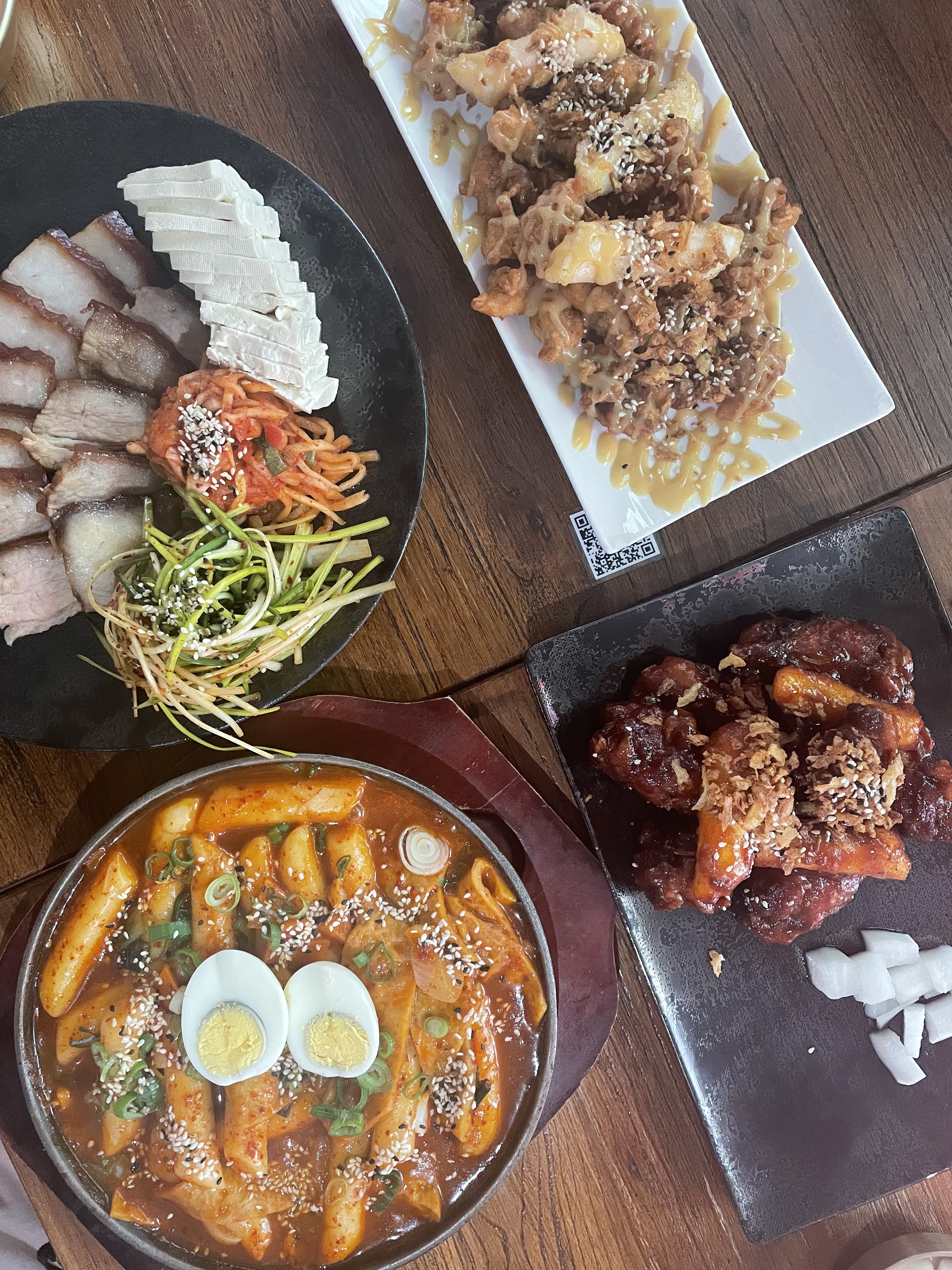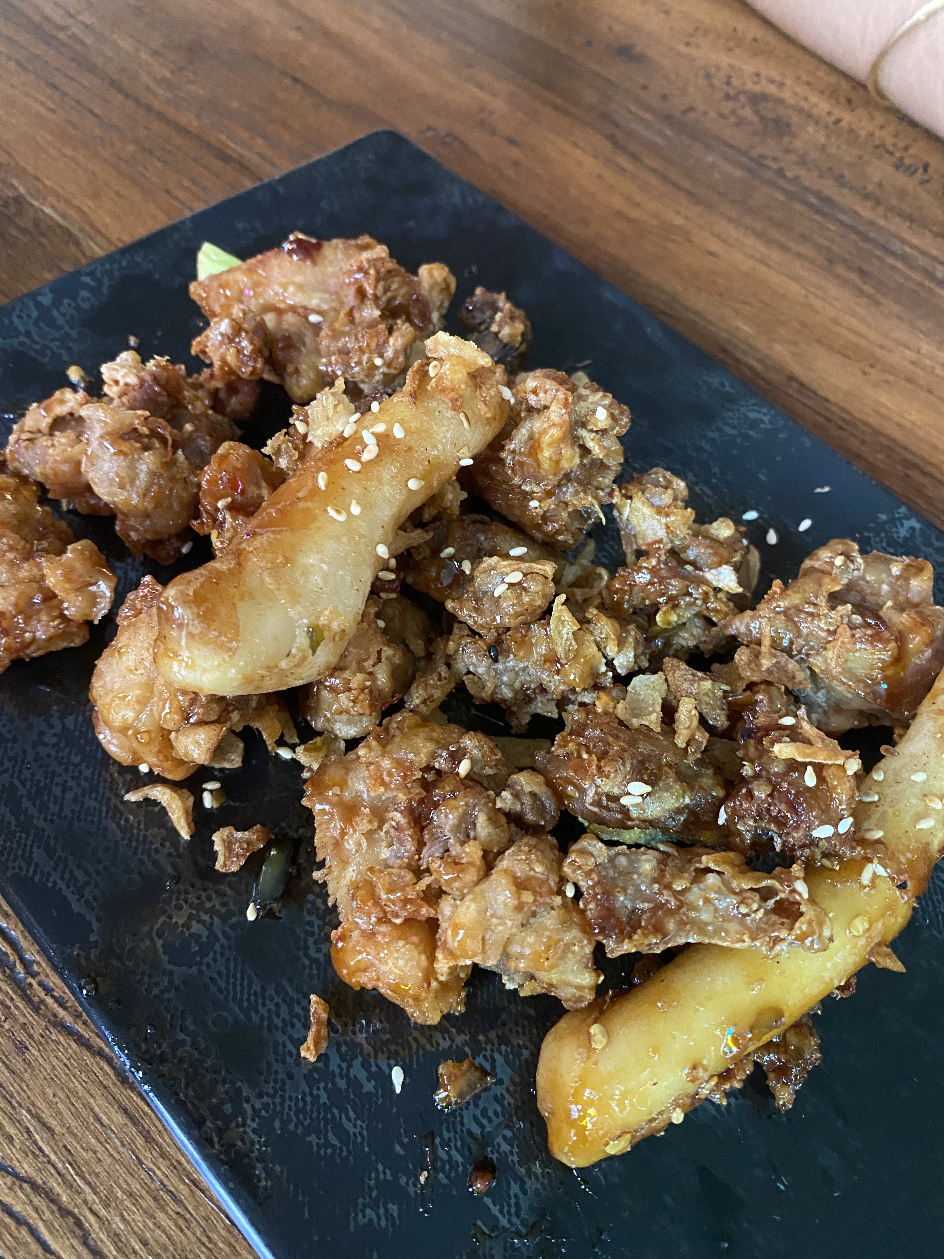 Première fois que je mange du poulet frit coréen et c’était vraiment top j’ai beaucoup aimé la pâte de riz frit c’était la première fois que j’en mangé bonne découverte.