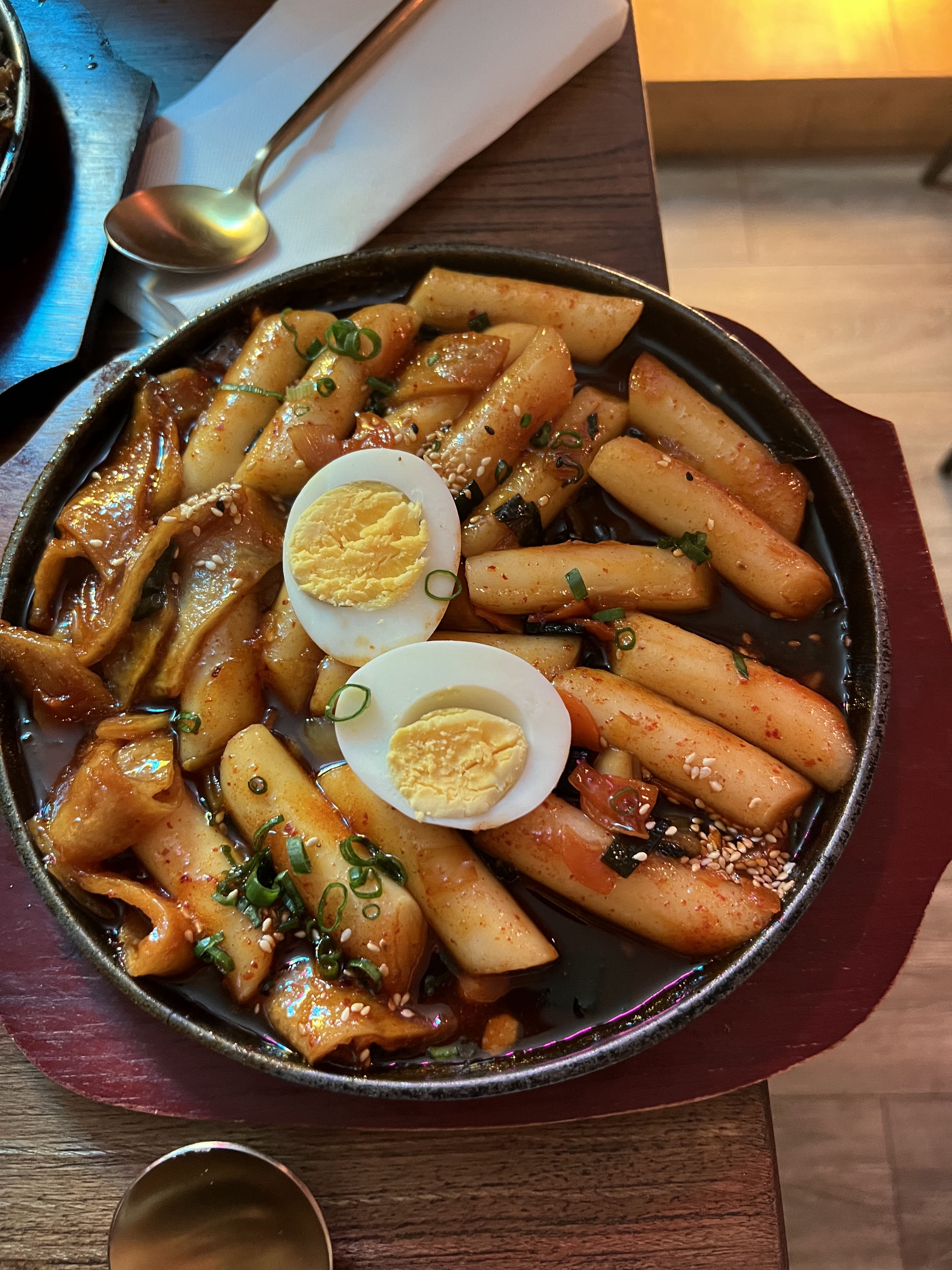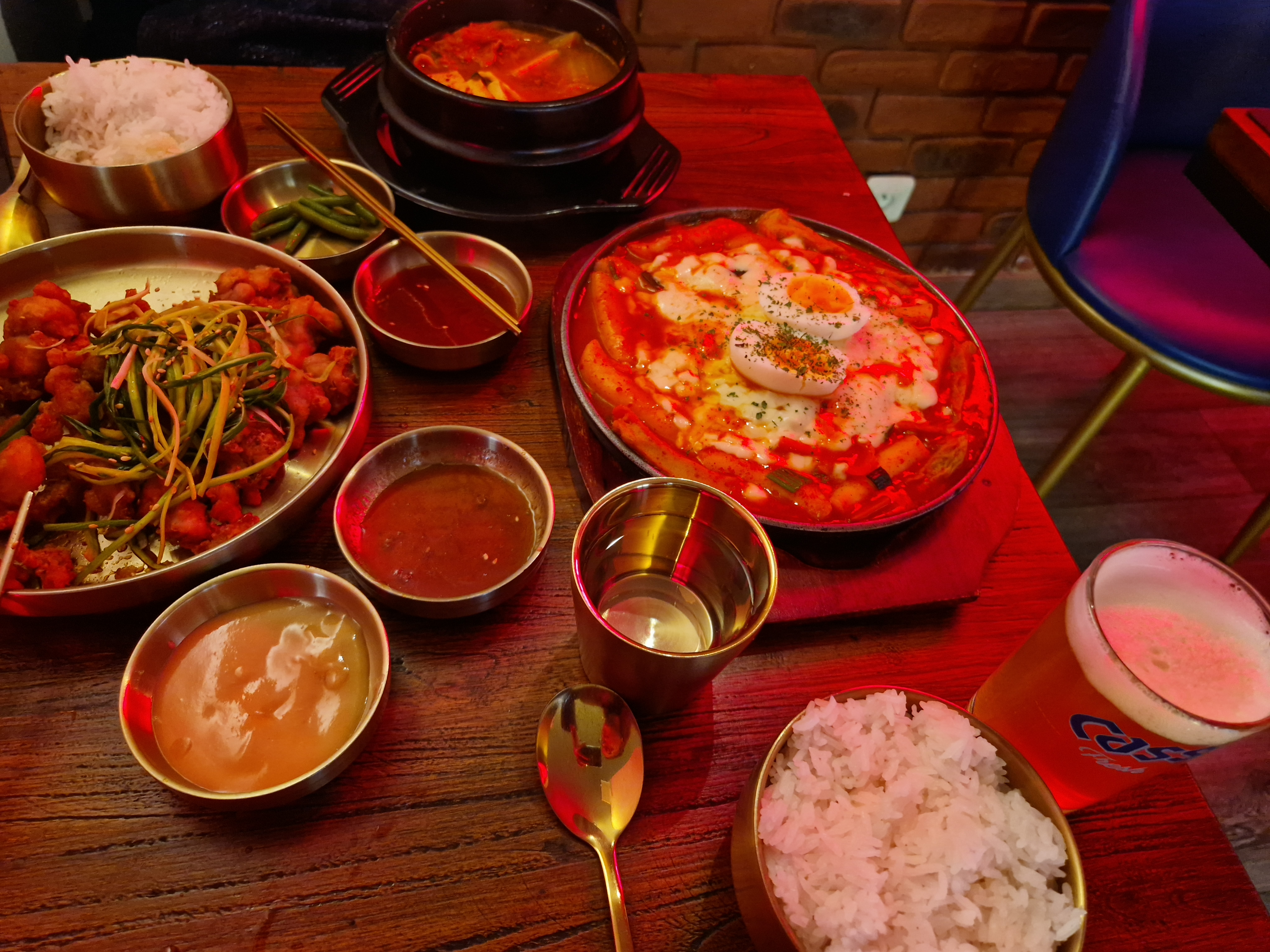 Venues après avoir lu les nombreuses revues sur ce restaurant. Nous avons pris un dak galbi (portion pour deux personnes) et un tteokbokki que nous avons partagé. Nous sommes ressorties en ayant encore faim. Les portions ne sont pas généreuses comparées au prix même si le goût y est. C'était bon ! De plus, nous avons été débarrassées alors que nous n'avions pas terminé notre repas et qu'il y avait encore des tables disponibles.