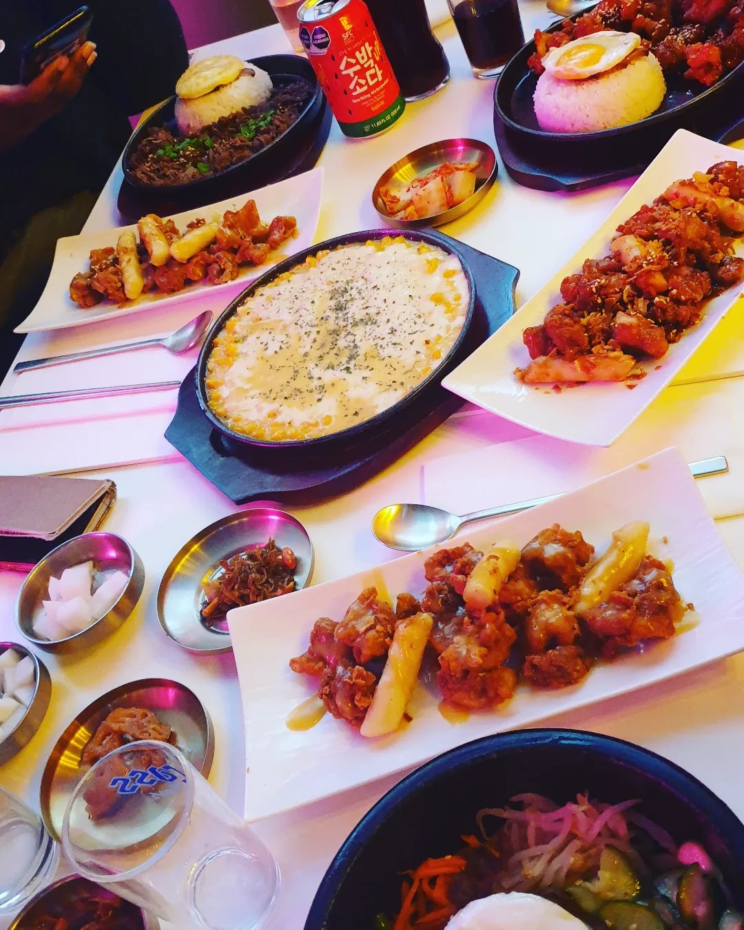 Un des points forts de ce lieu est sans aucun doute les projections K-pop qui accompagnent le repas, les K-pop stan se sentiront particulièrement chez eux ici. Le service était incroyablement rapide et les plats à base de poulet frit et le JapChae étaient délicieux, ce qui est toujours appréciable, surtout lorsqu'on a faim ! Je recommande vivement ce restaurant à tous ceux qui cherchent une expérience culinaire coréenne et satisfaisante.