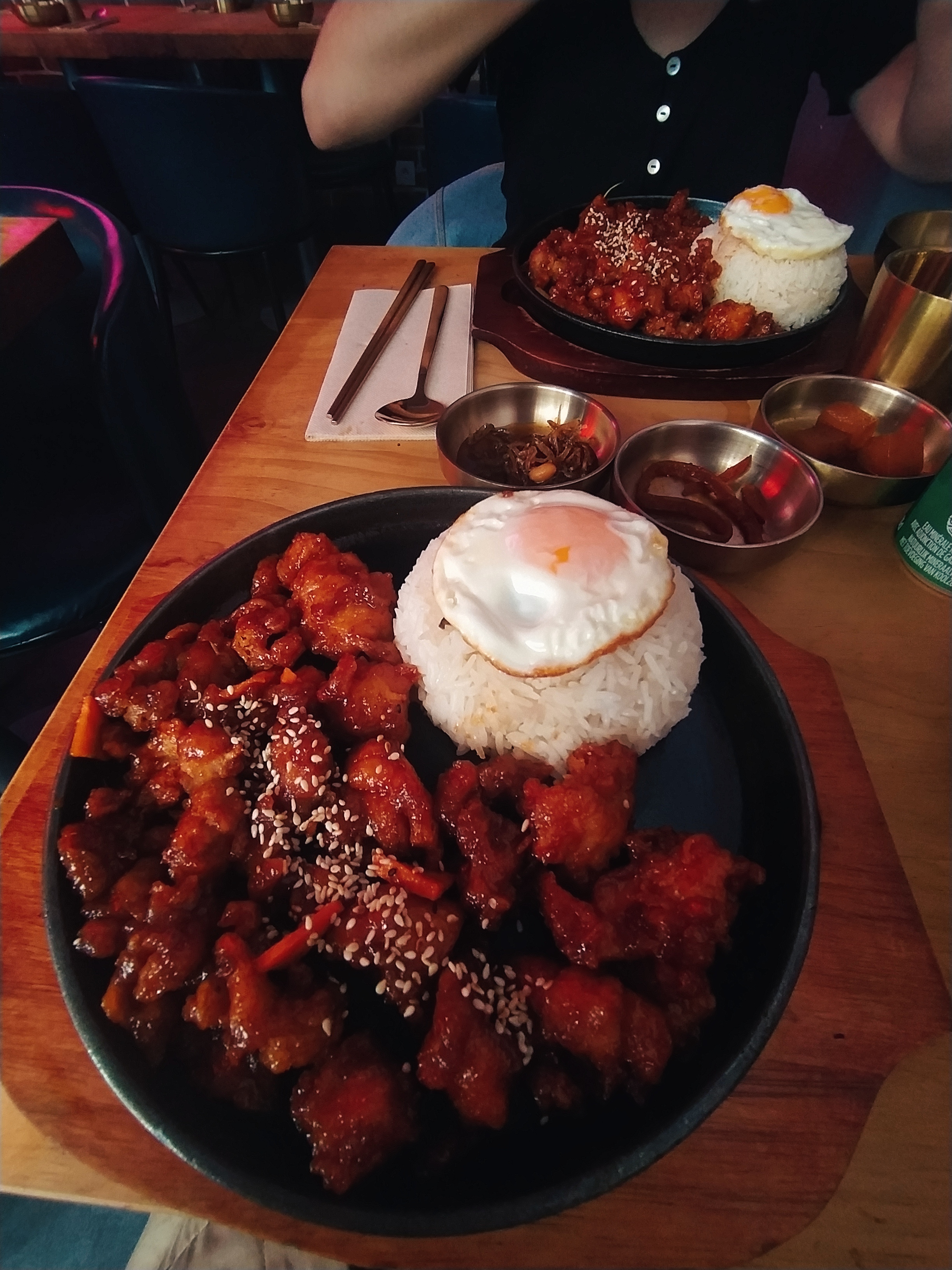 Une adresse que je fréquente souvent, avec une bonne ambiance ! Le restaurant est bruyant (musiques k-pop) donc faites attention si jamais ce n’est pas ce que vous recherchez. Sinon n’hésitez pas ☺️🎶 Adresse à tester pour son poulet frit qui est excellent et piquant comme il faut 🍗