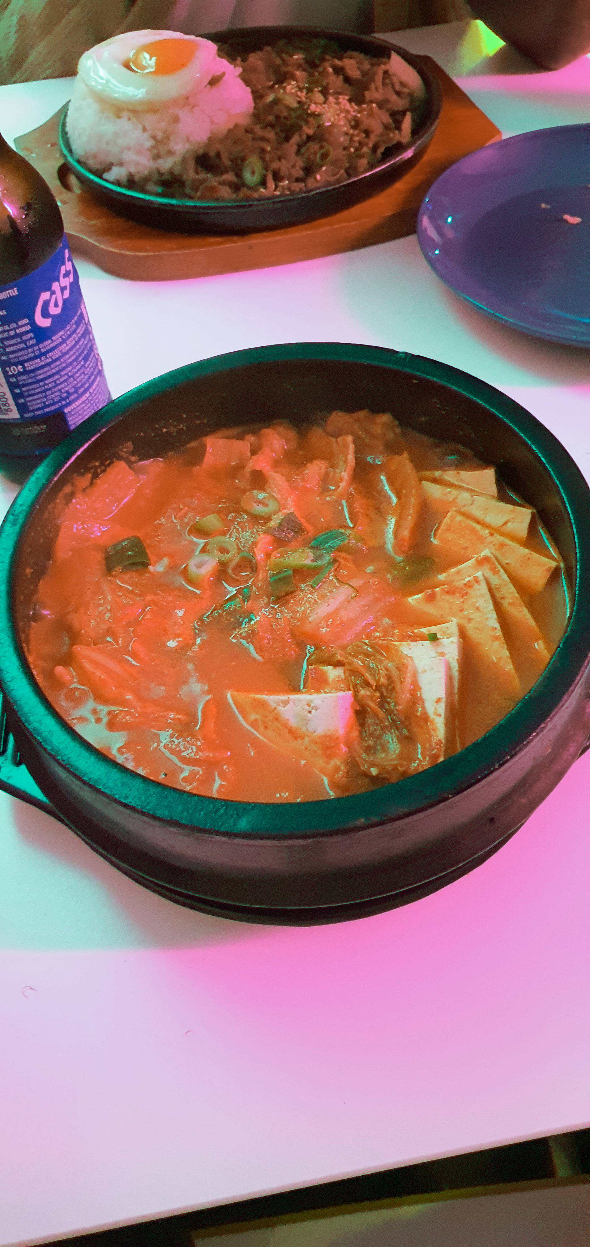 Nous avons passé un très bon moment. Tous nos plats étaient très savoureux et généreux. Mention spéciale pour la soupe au poulpe et tofu qui était délicieuse ! On n’en trouve pas dans tous les restaurants coréens et c’était une bonne surprise. Côté ambiance, j’avais un peu de mal avec la lumière très basse et l’ambiance karaoke à l’étage, mais on s’y habitue.