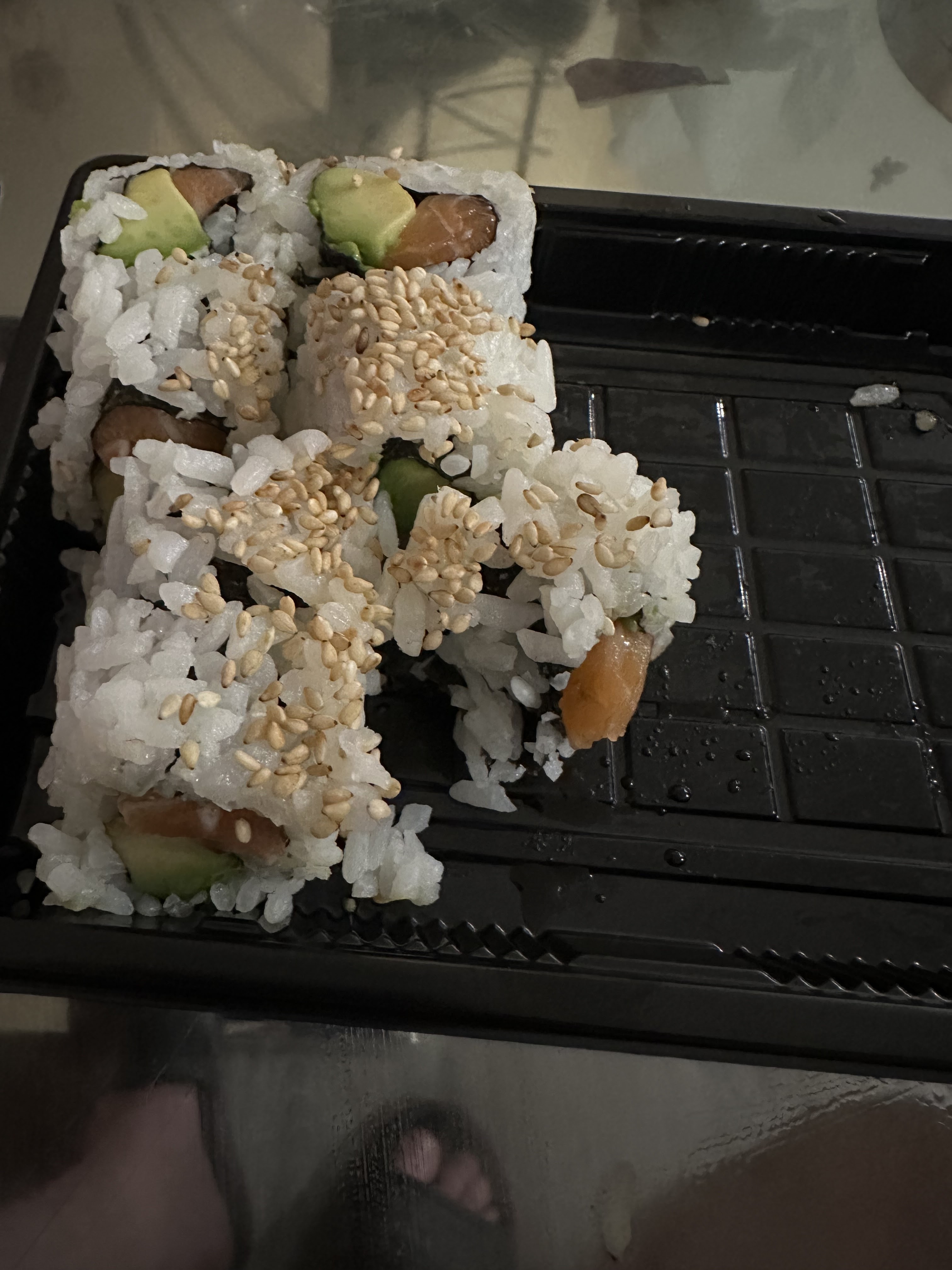 Quelque chose n’allait pas malheureusement dans mon repas. J’ai passé une bonne partie de la soirée à le vomir. California mous et chauds. Perles de coco ayant une consistance étrange et elles étaient sèches. Intoxication alimentaire. Plus jamais.