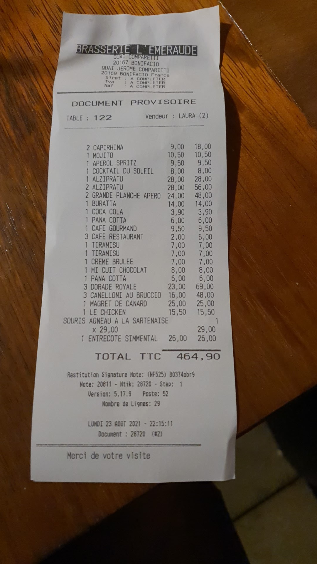 Mon mari étant actuellement chez des amis a Bonifacio a eu la chance d'y manger samedi soir et ma téléphoner pour me dire qu'il avait été super bien accueilli et d'une gentillesse des gens vrai avec une très très bonne cuisine et ma dit vite que tu arrives qu'ont va manger là je vous dis Merci pour votre gentillesse et votre cuisine vite que j'arrive