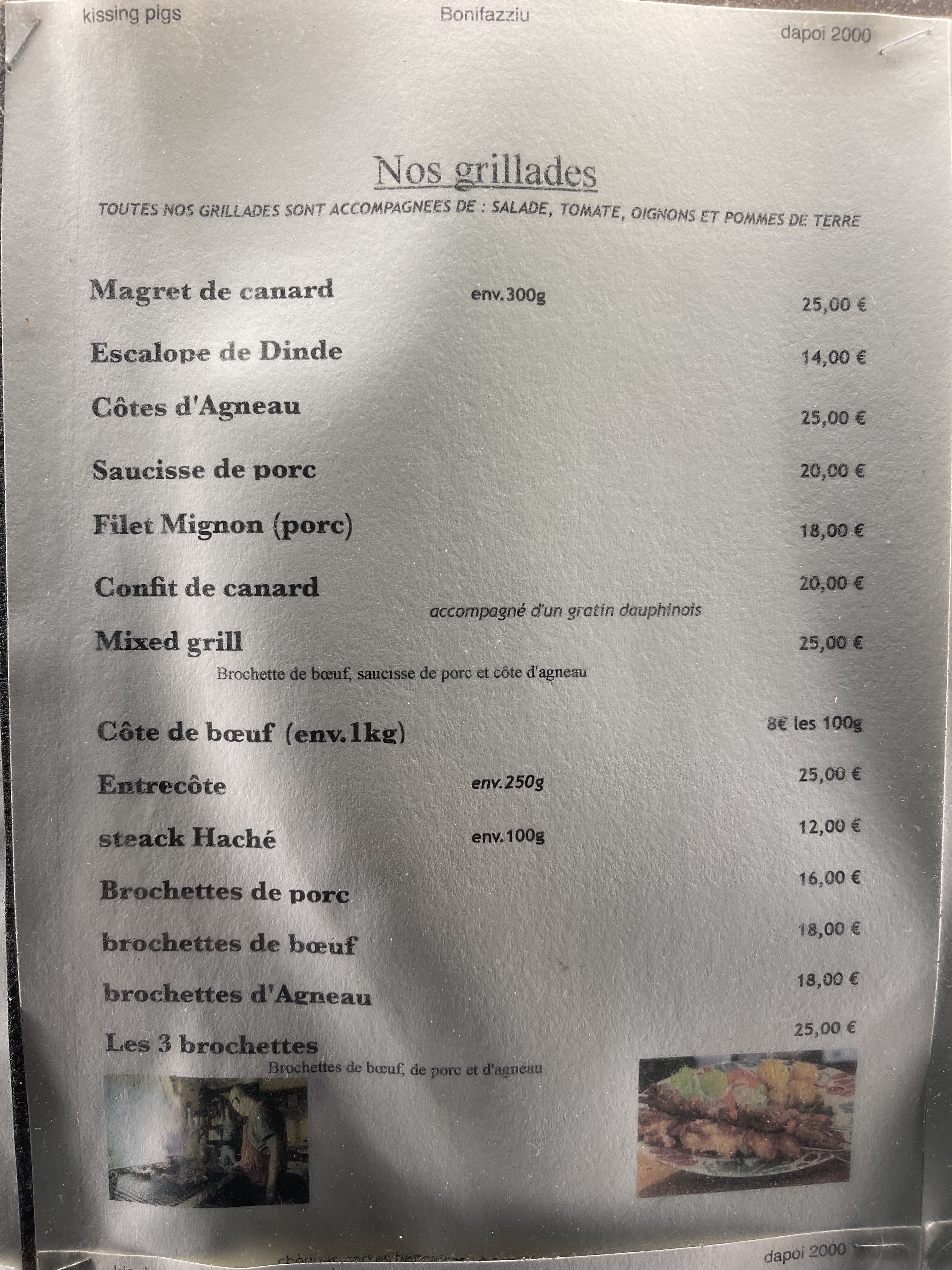 Délicieuse expérience au Kissing Pigs ! Le service est chaleureux et les plats sont bons avec des produits locaux ! Je recommande vivement lorsque vous êtes de passage à Bonifacio 🐖🐽