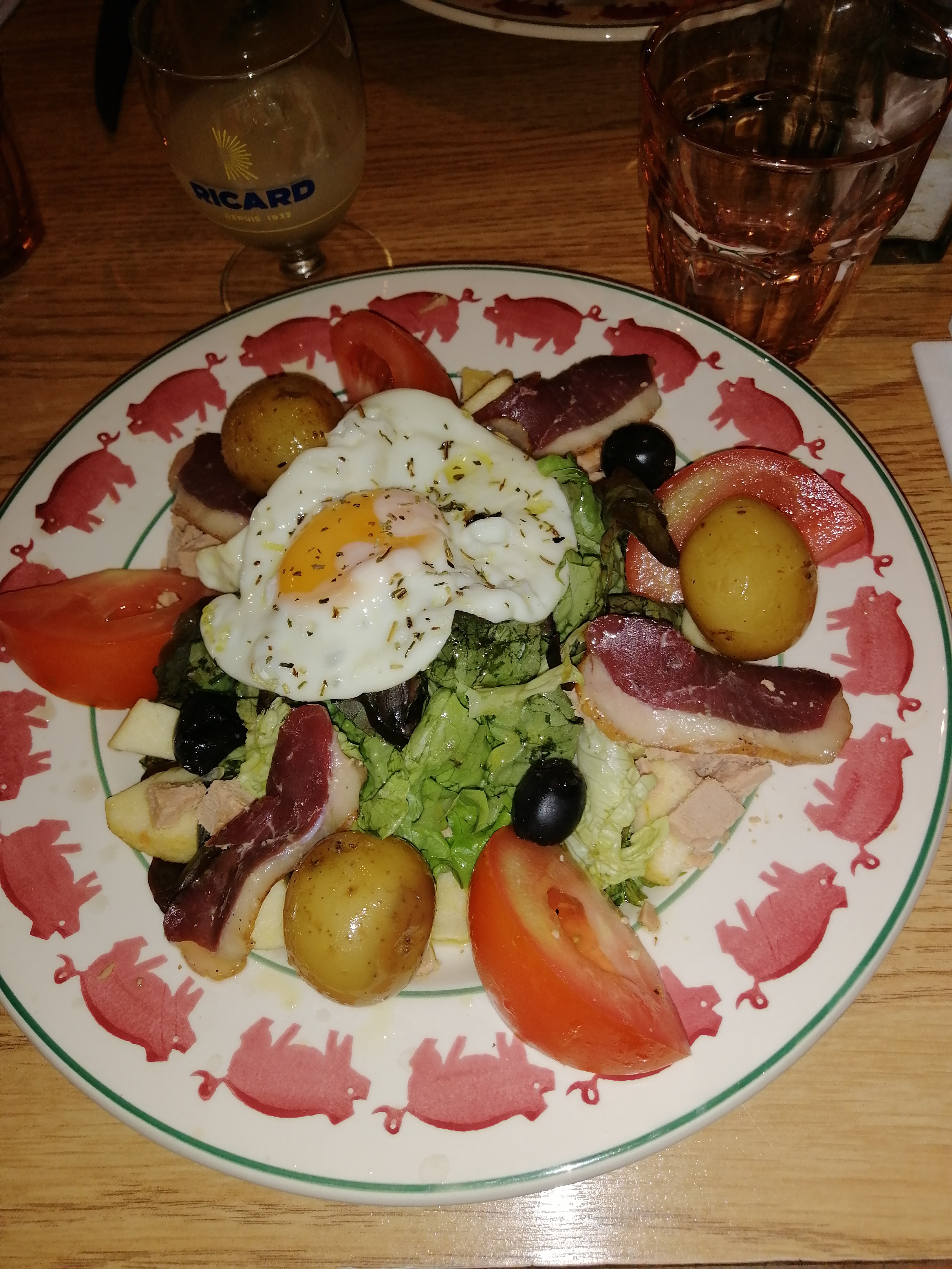 L’adresse est bonne, l’accueil et le service aussi ; L’attente pour les boissons se fait vite oublier tant le serveur a la volonté de bien faire. U Ficu et la salade Périgourdine réconfortants ++ pour une pause déjeuner hivernale. Bref voilà un cochon qui a de la gueule, allez-y 🐷