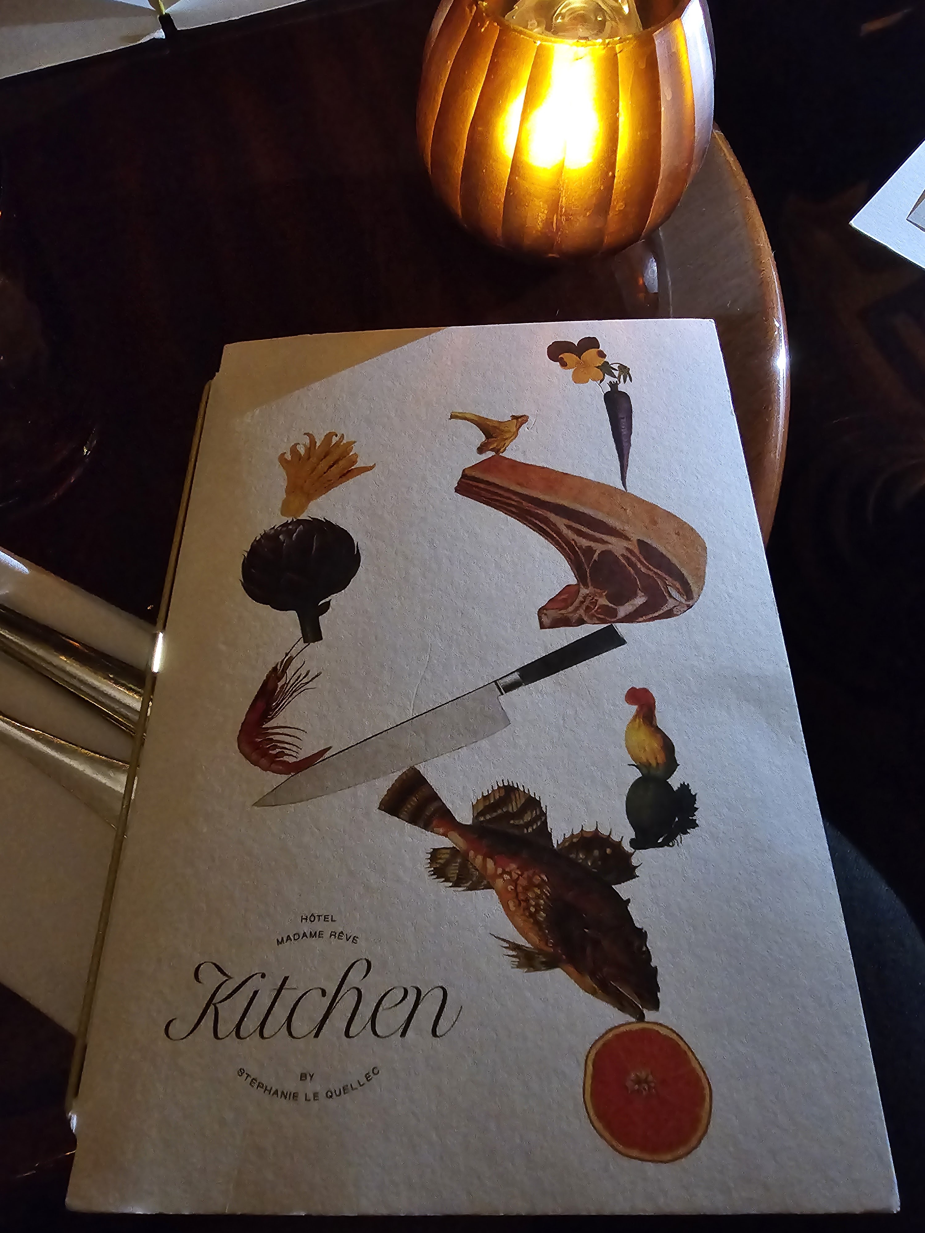 Nous avons passé une formidable soirée au restaurant ' Kitchen' de l'hôtel Madame Rêve. Tout était parfait : très agréable accueil par la réceptionniste, le service à table a été bien géré par un très jeune serveur ( son 1er jour de travail ) avec les petits soins, l'échange avec le sommelier était joyeux, et bien accompagné par le très jeune et professionnel maître d'hôtel, qui savait répondre toutes nos questions( l'histoire du restaurant, le style architectural, ......) Notamment le très jeune barman, qui est très pointu sur tous les spiritueux, crée des cocktails avec une bon harmonie en matière et en goût. à les déguster absolument! Les plats de la cheffe Stéphanie le QUELLEC , comment dire, c'est une turie!!!!!!! Tout est bon ( paté de crouton au foie gras, l'épaule d'agneau, curry de crevette, brioche perdue à la glace caramel) Je vous recommande vivement ce restaurant!