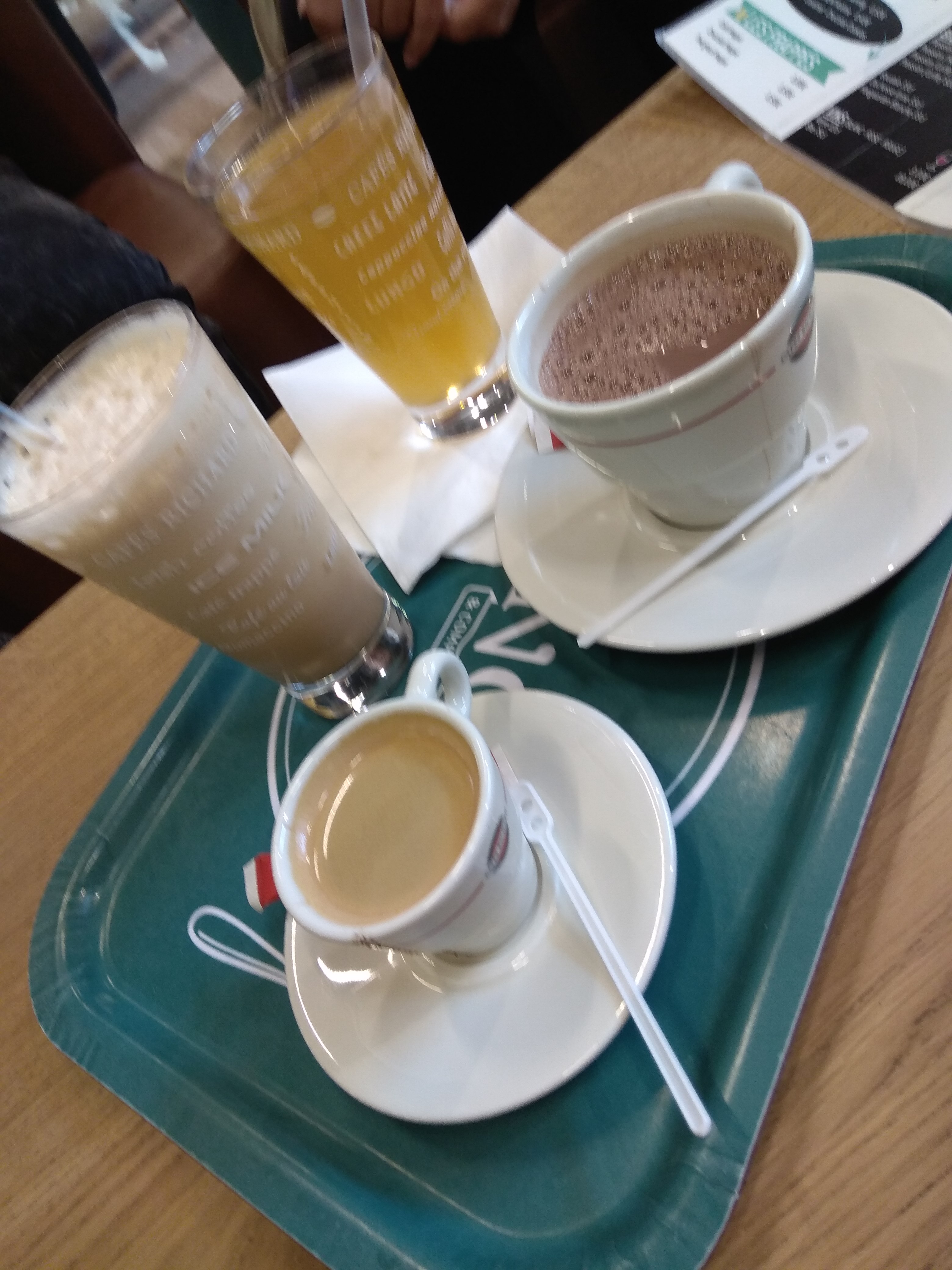 Je suis arrivé avec mon épouse pour prendre un chocolat la table étais salle, celui qui avais les cheveux court nous a servi sans nettoyer la table affreuse avec plein des miettes, vous n’allez pas le croire je suis allé voir l’autre serveur au cheveux long de nettoyer la table, il m’a dit de prendre une éponge et de la nettoyer moi même, j’étais stupéfait, j’ai répondu mais vous rigolez !!, il m’a dit tu es citoyen tu pourrais la nettoyer toi même, en plus le chocolat étais froid, à fuir