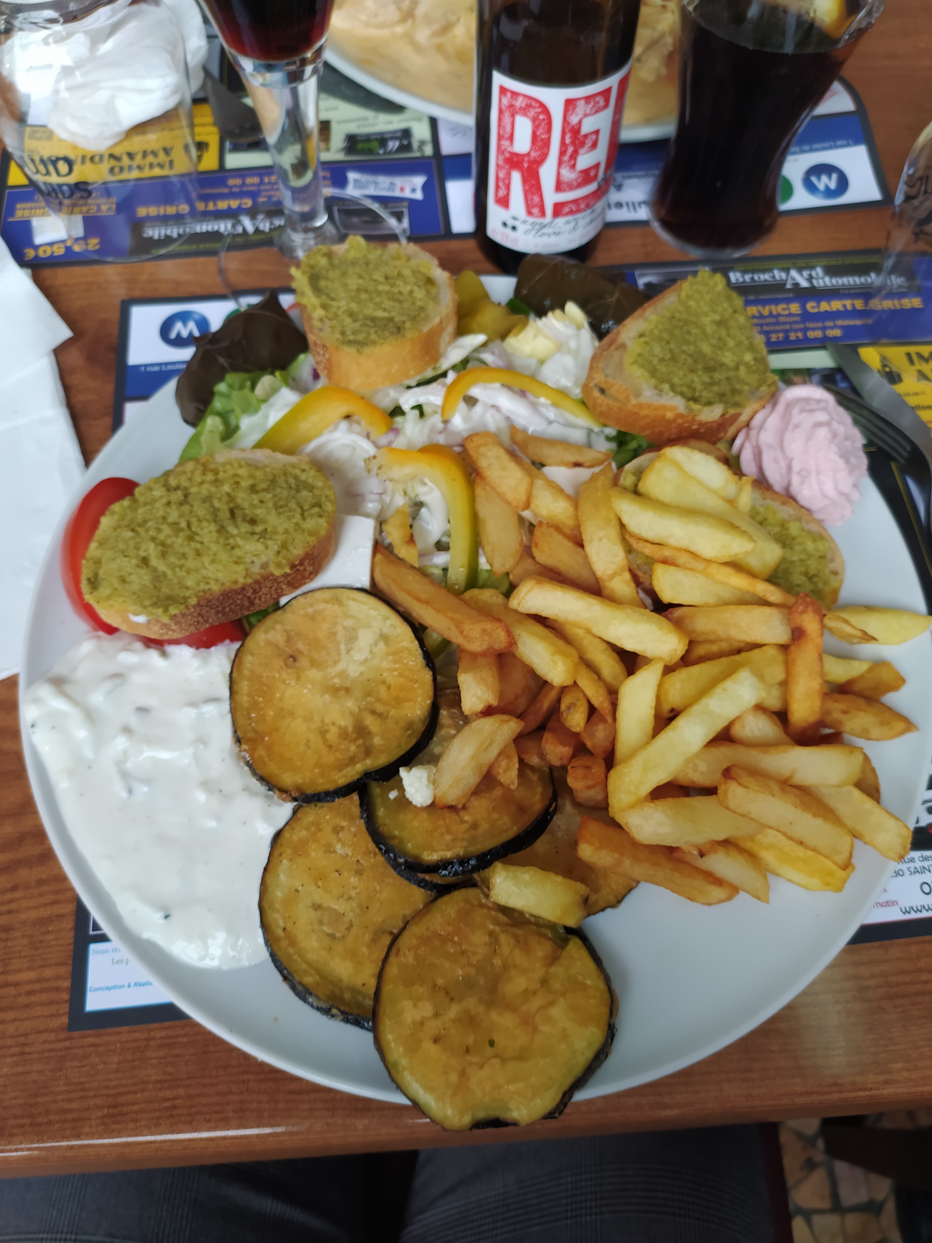 30 min d attente....juste pour nous demander la boisson...sans olives ni amuses gueules.... Option végé...top!j etais sensé avoir des aubergines grillées....mais absentes... Mon amie a eu de la viande surchargée d herbes de Provence ....pas de goût Pas de pain..enfin baguette industrielle Je deconseille
